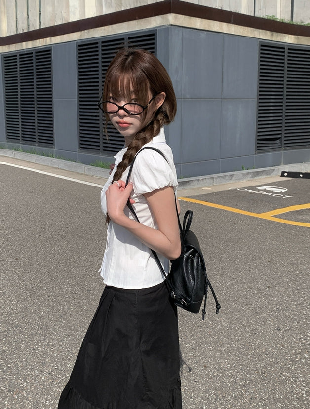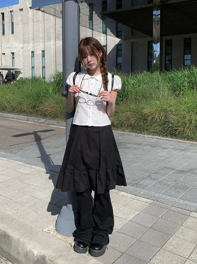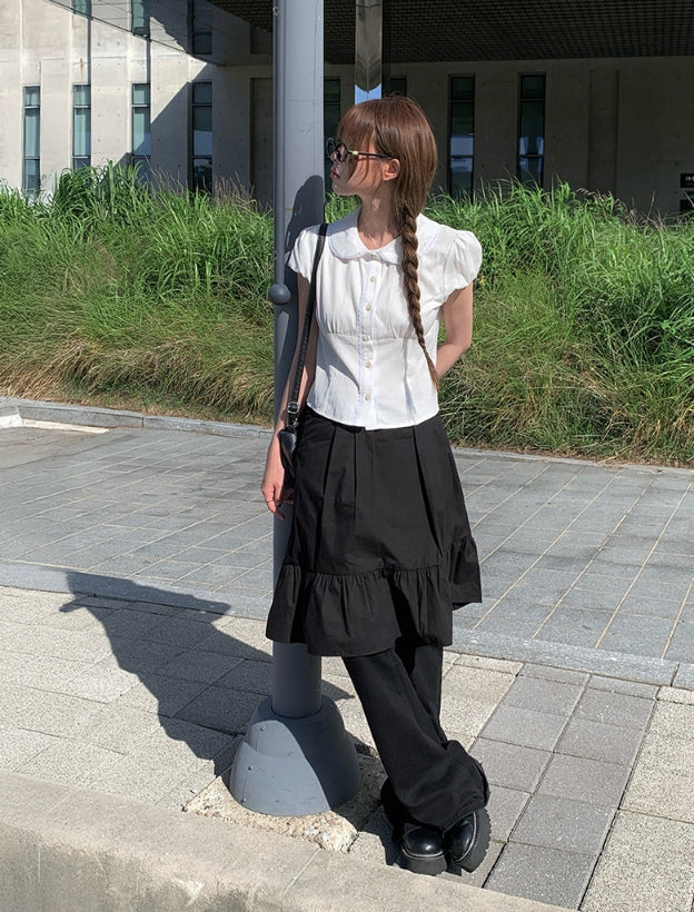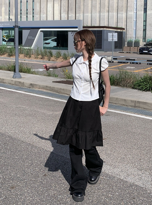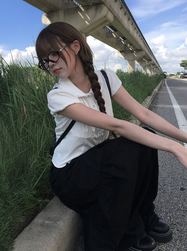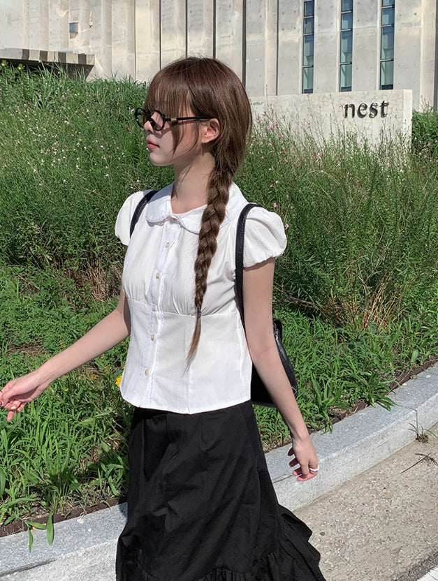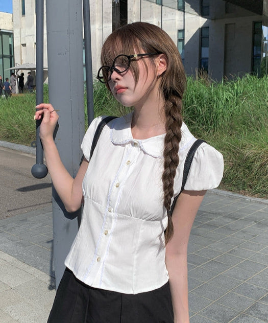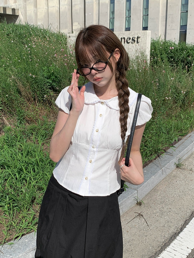 Eva Summer Cap Sleeve Lace Collar Blouse