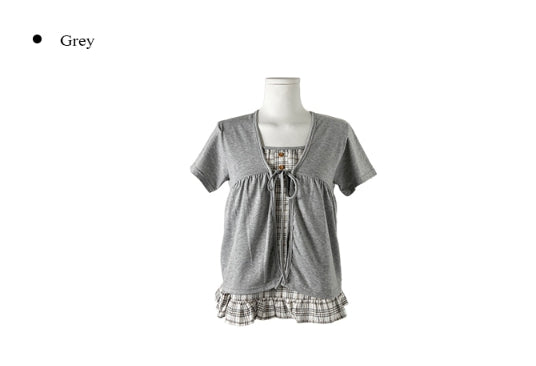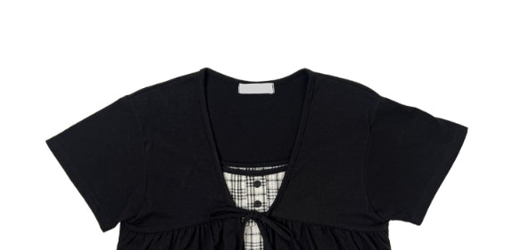 [重ね着風]デビンチェックフリルレイヤードブラウス