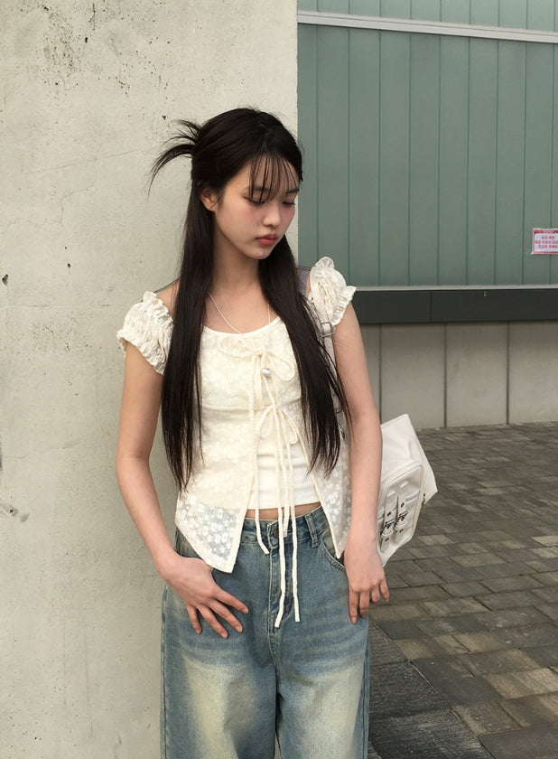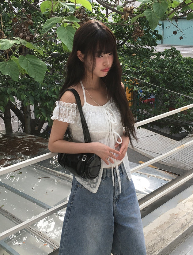 [Fake Layered] Mimi Layered Halter Lace T-shirt