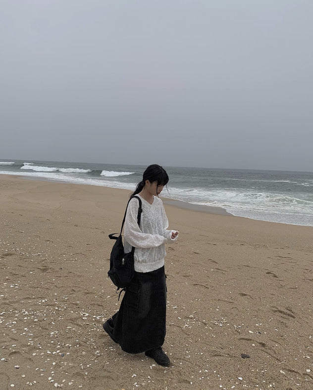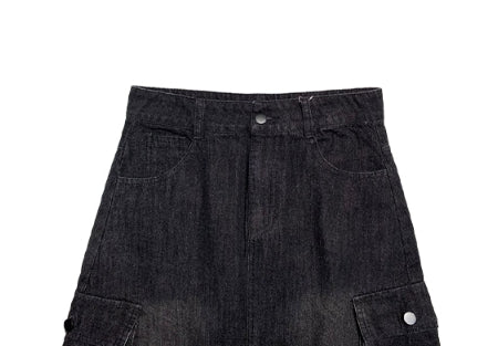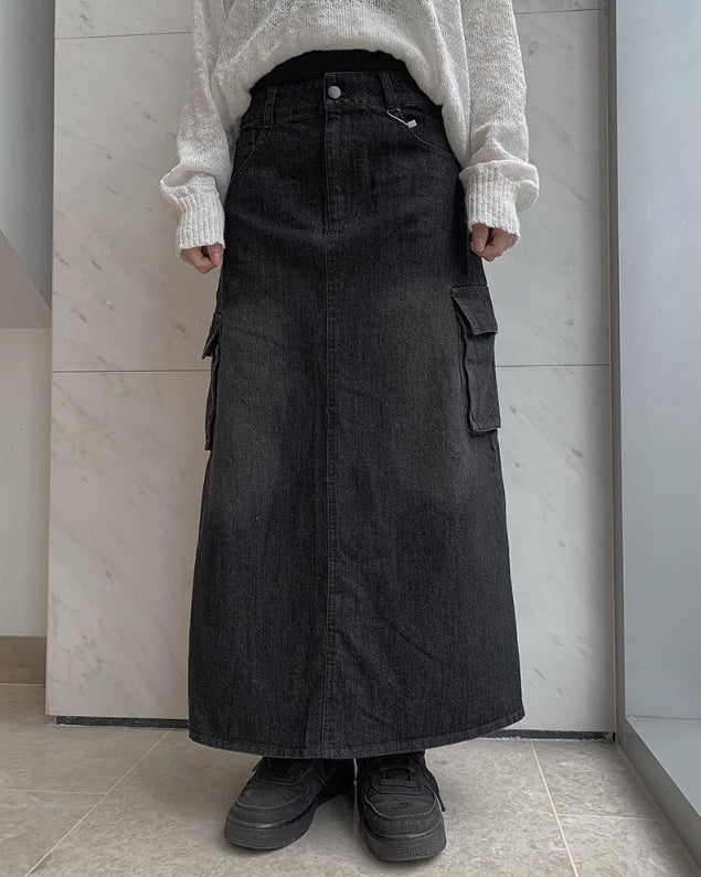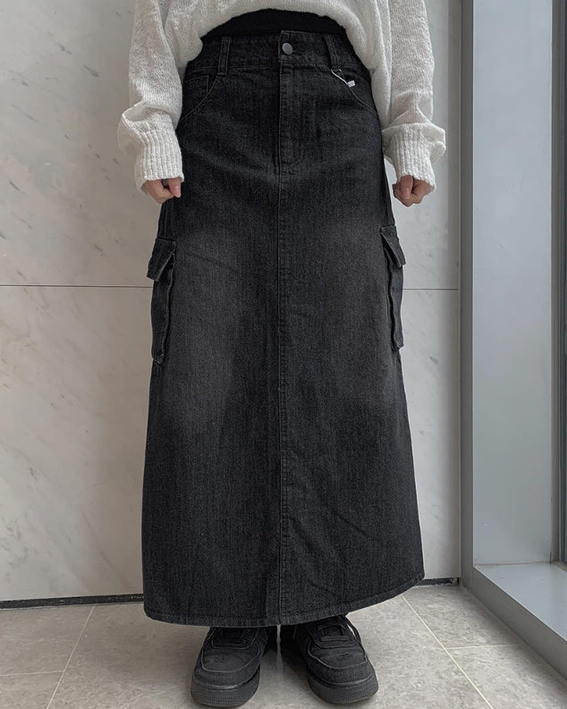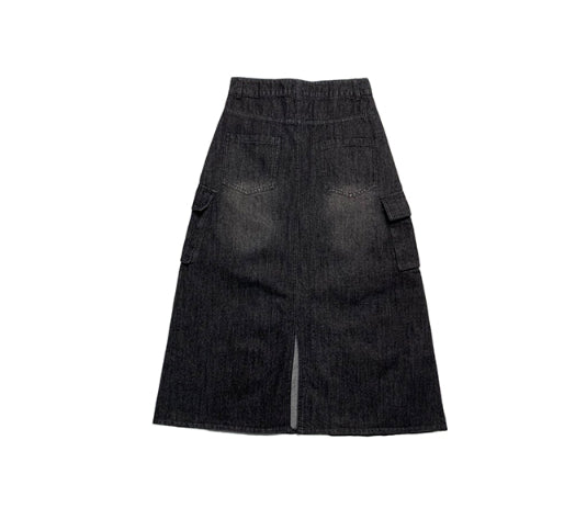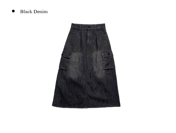 Flak Cargo Black Denim Long Skirt