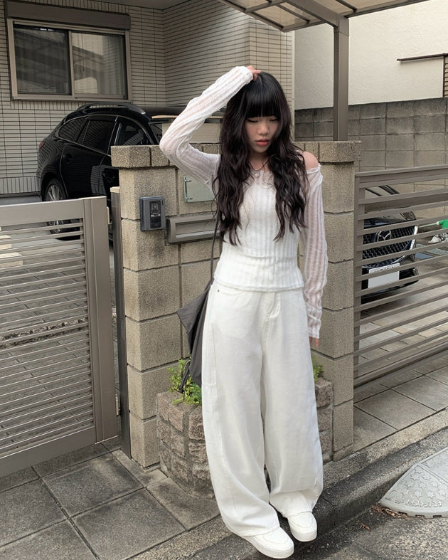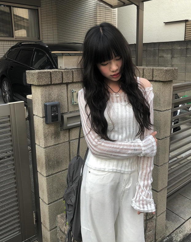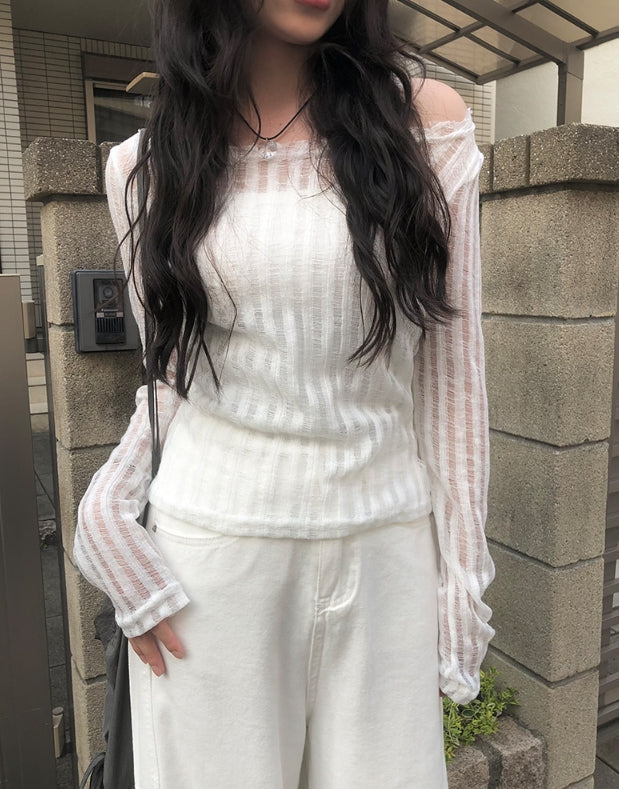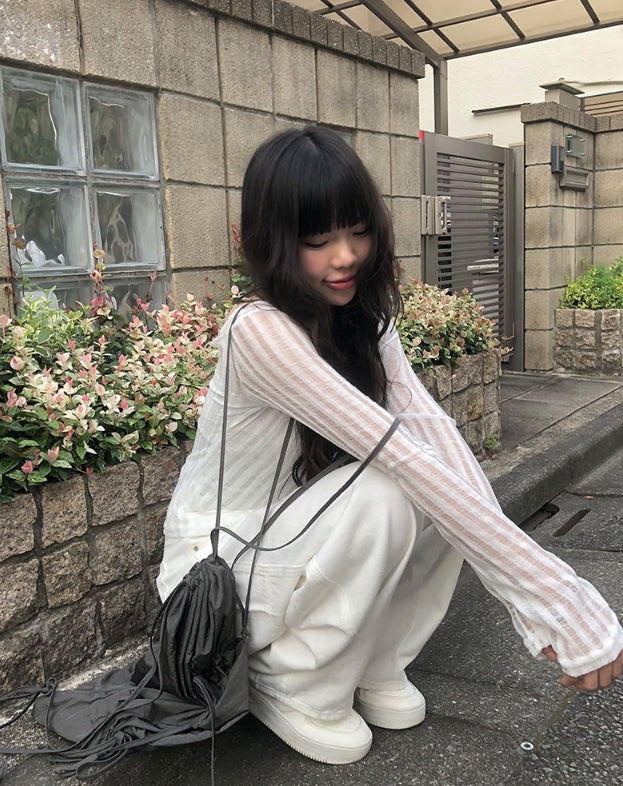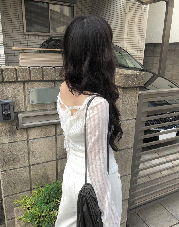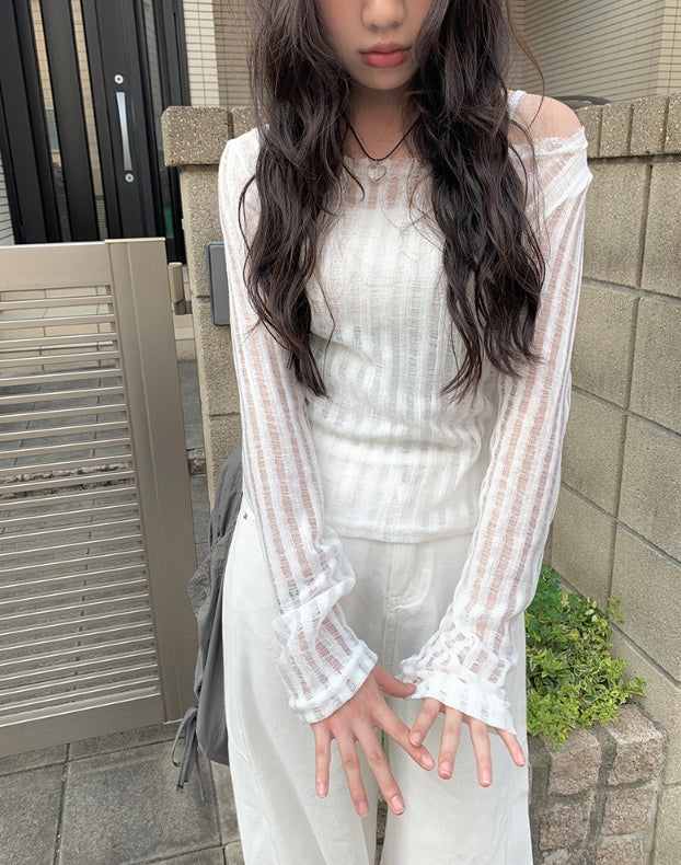 ファンディシースルーストラップ長袖Tシャツ