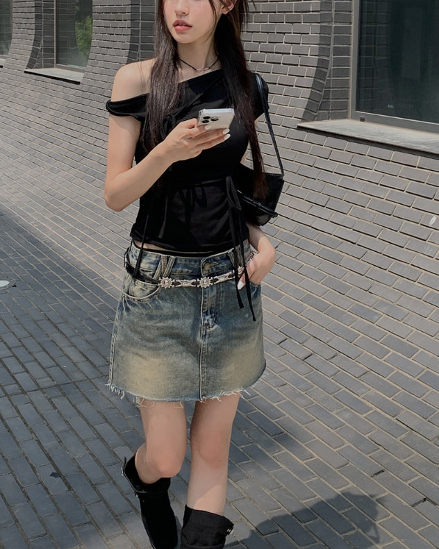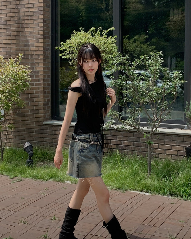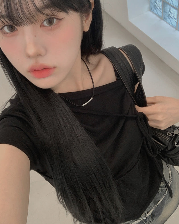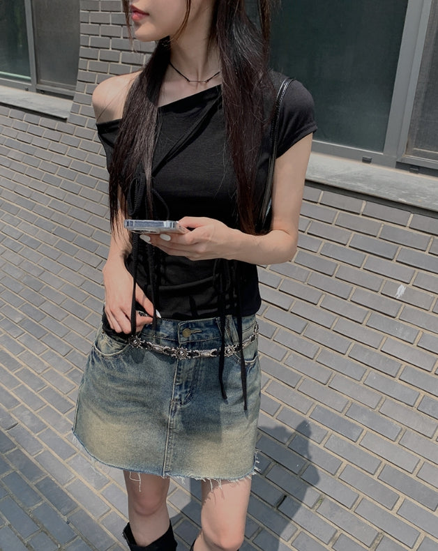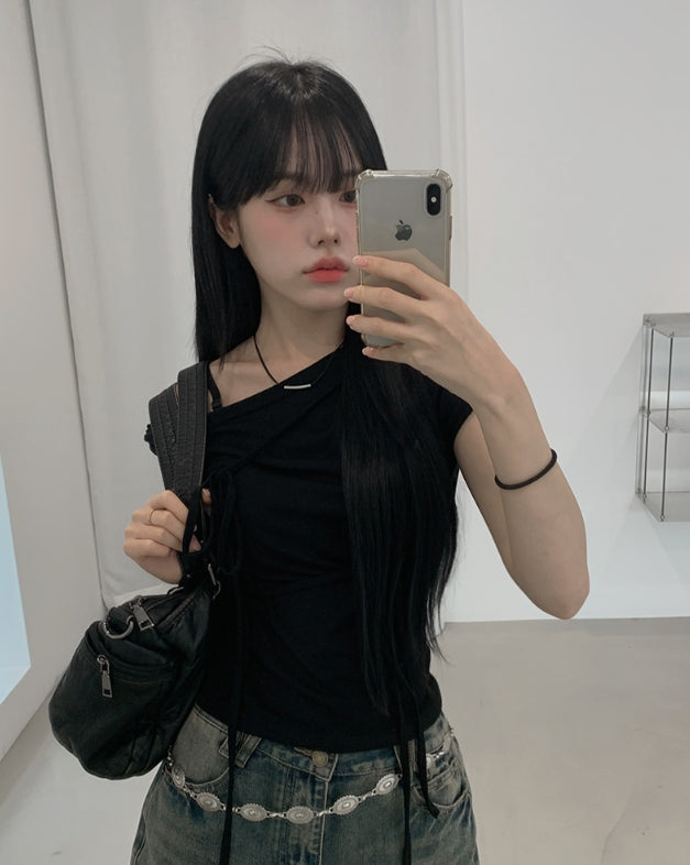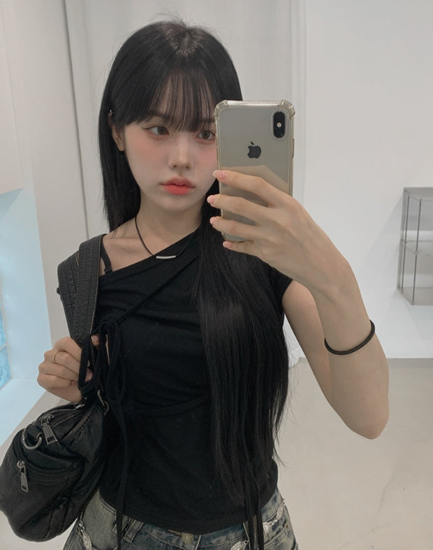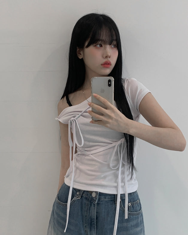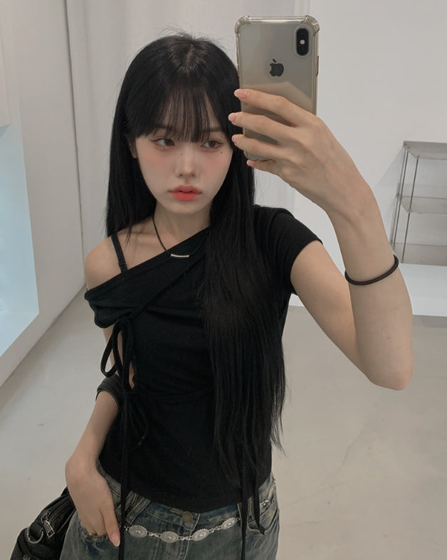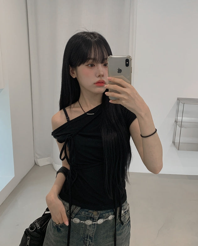 Fuse Ribbon Strap Off Shoulder T-Shirt