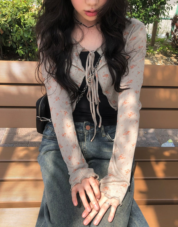 [キャミソール2色付き] グリップフラワーカーディガンキャミソールセット