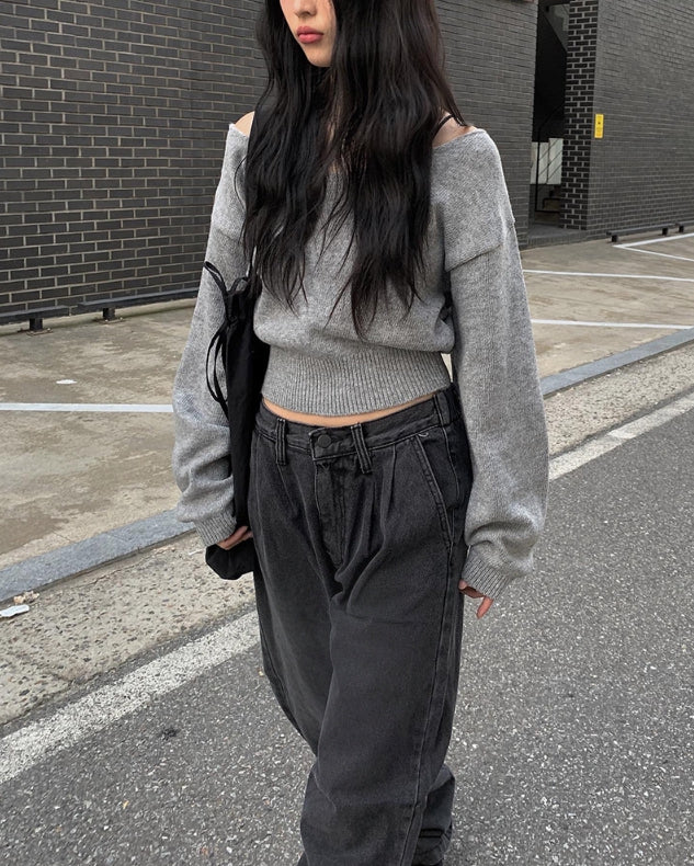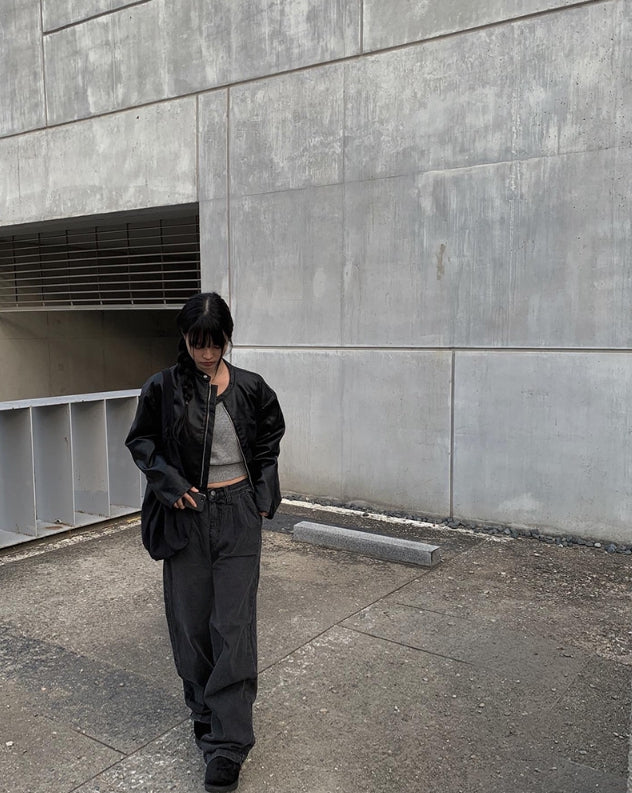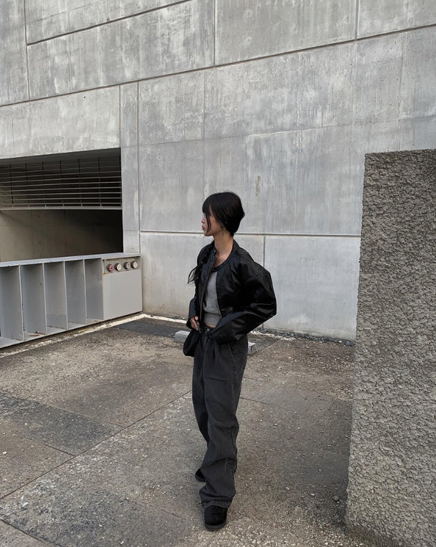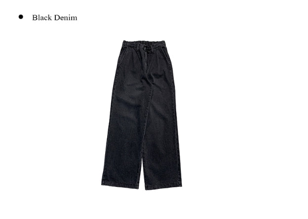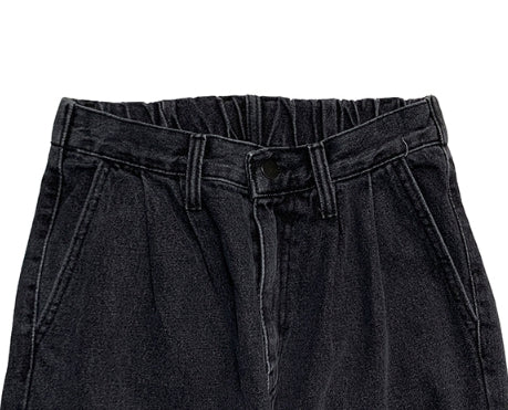 ヘッドブラックブルーピンタックワイドデニムパンツ