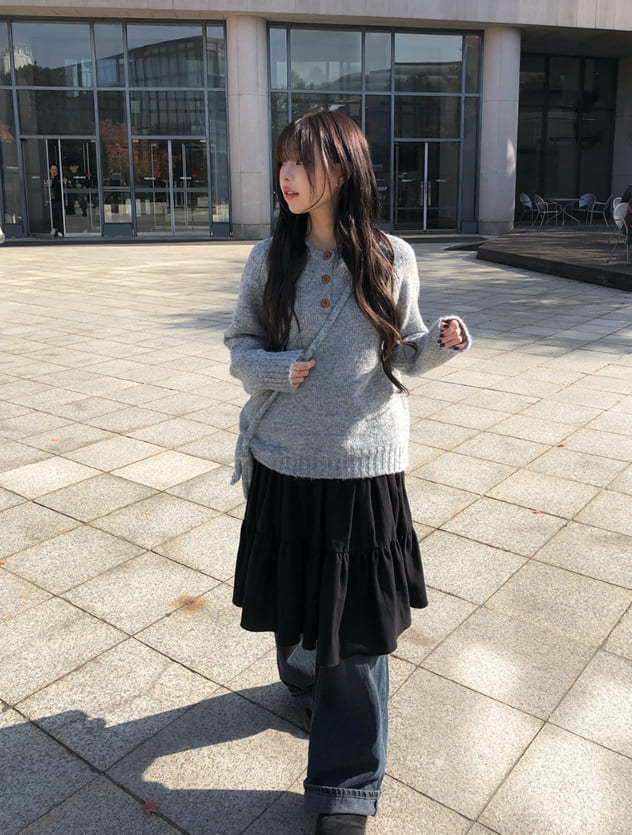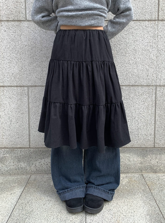 ヒュシピーチ起毛ティアードミディスカート