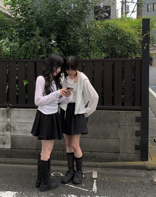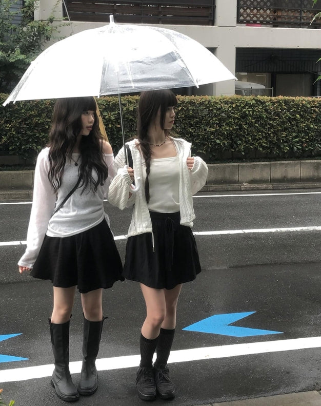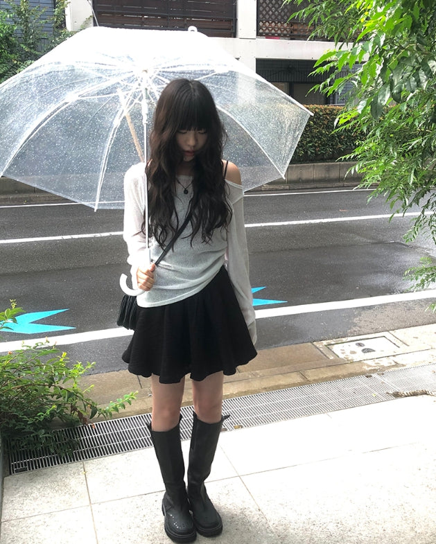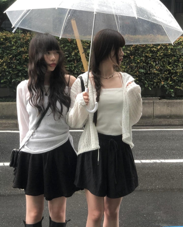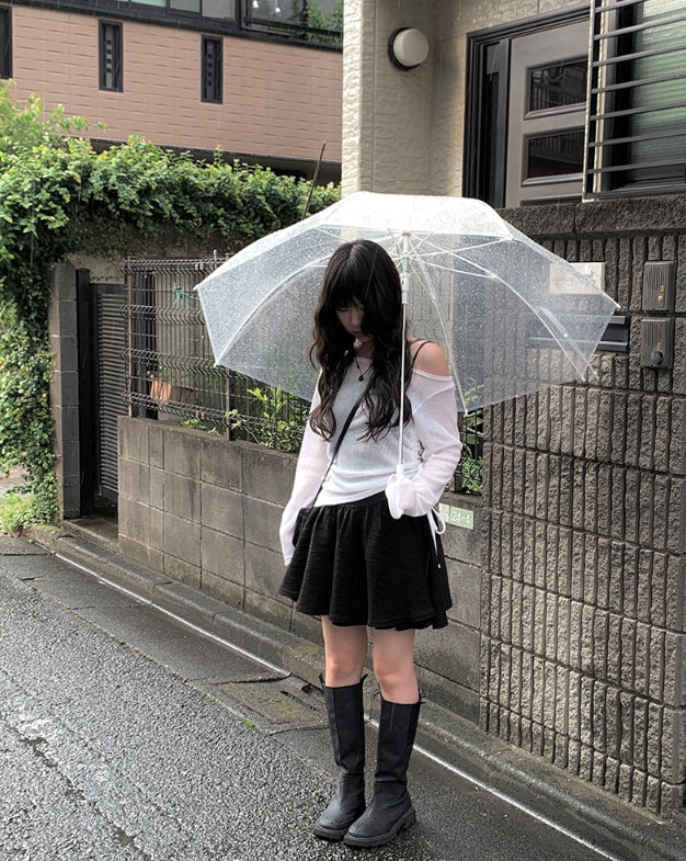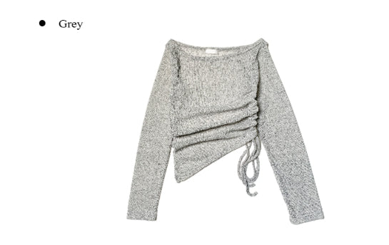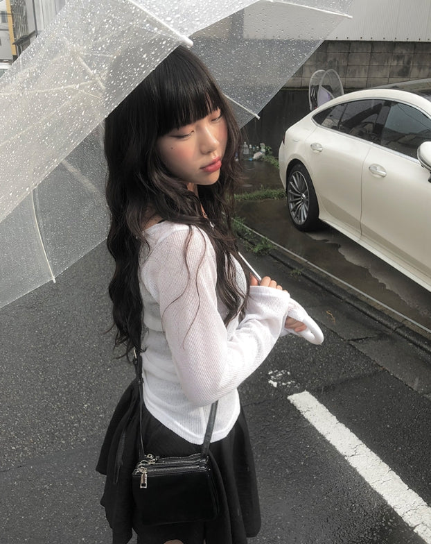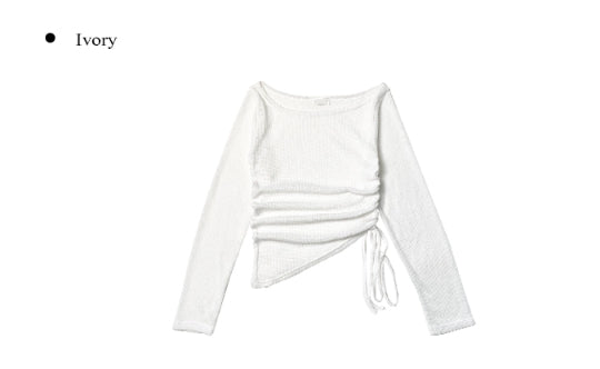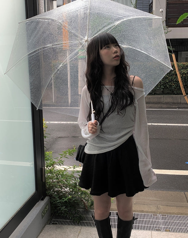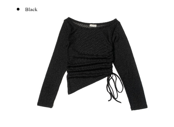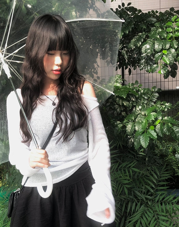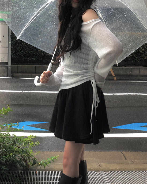 Jea Summer Long Sleeve Off Shoulder See Through Shirring T-Shirt