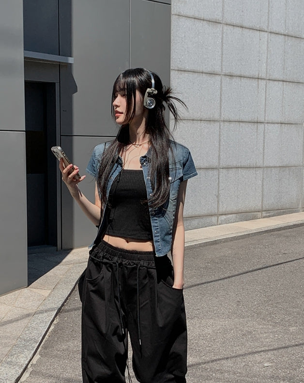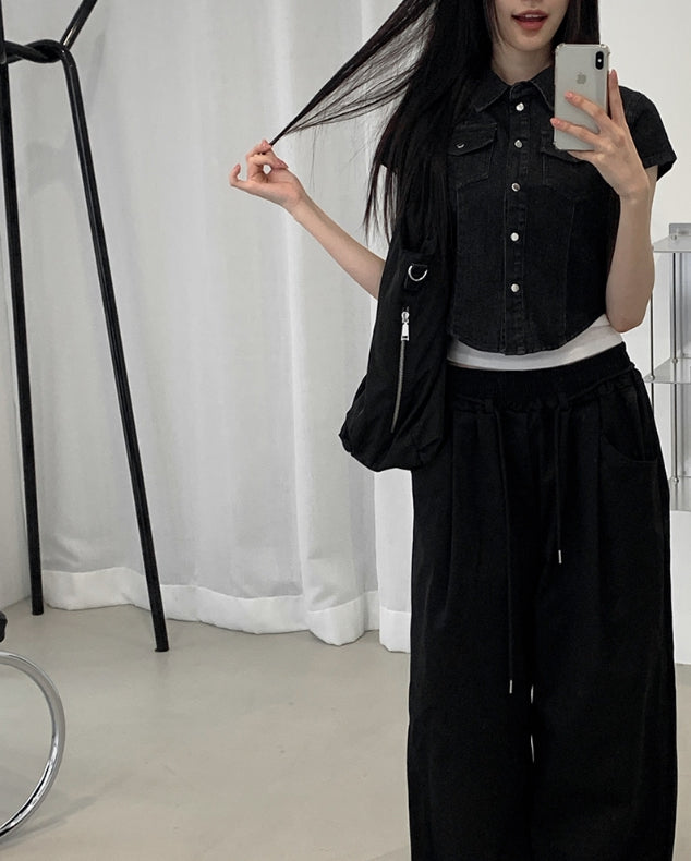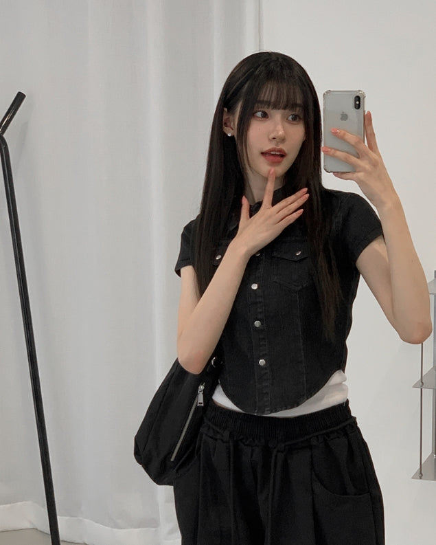 キット半袖スナップデニムシャツ