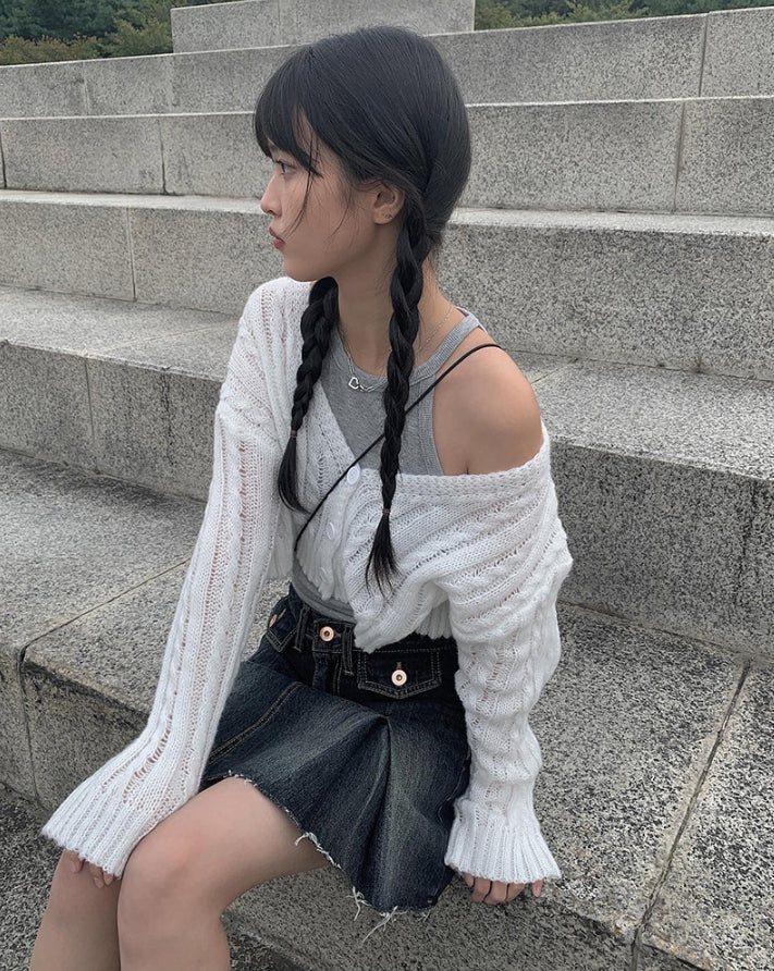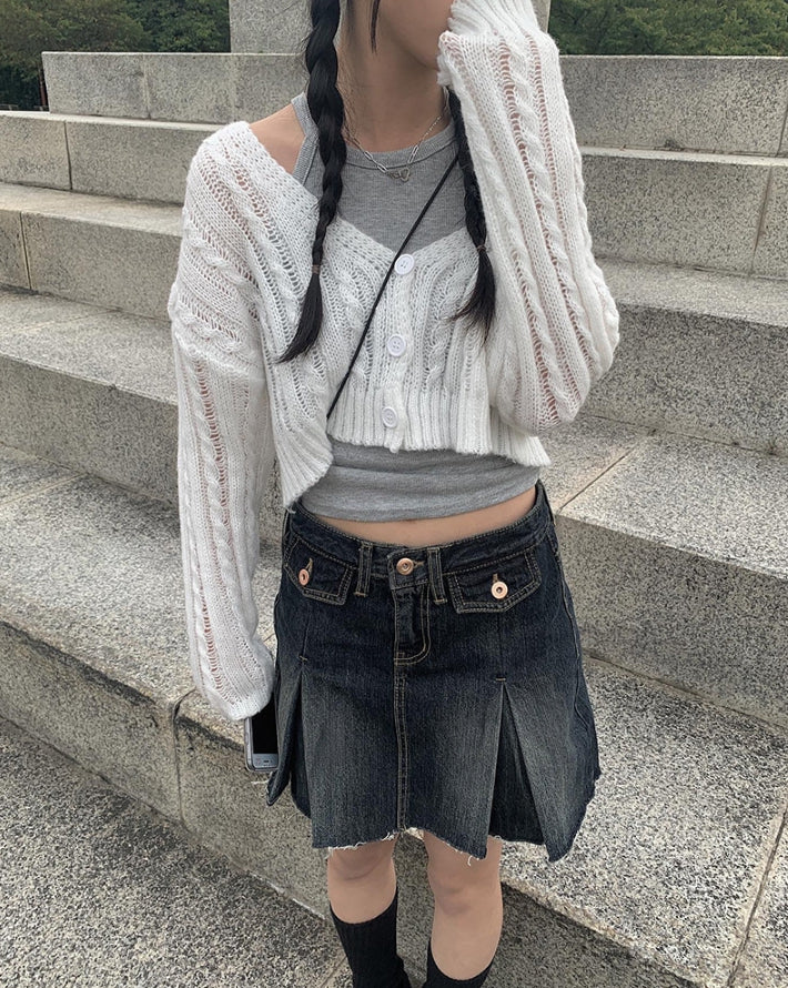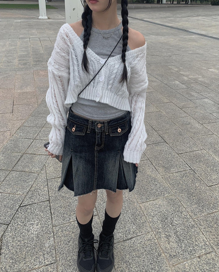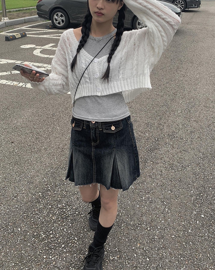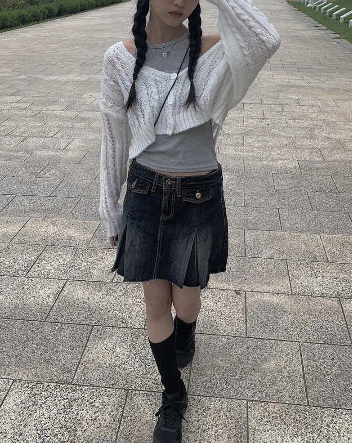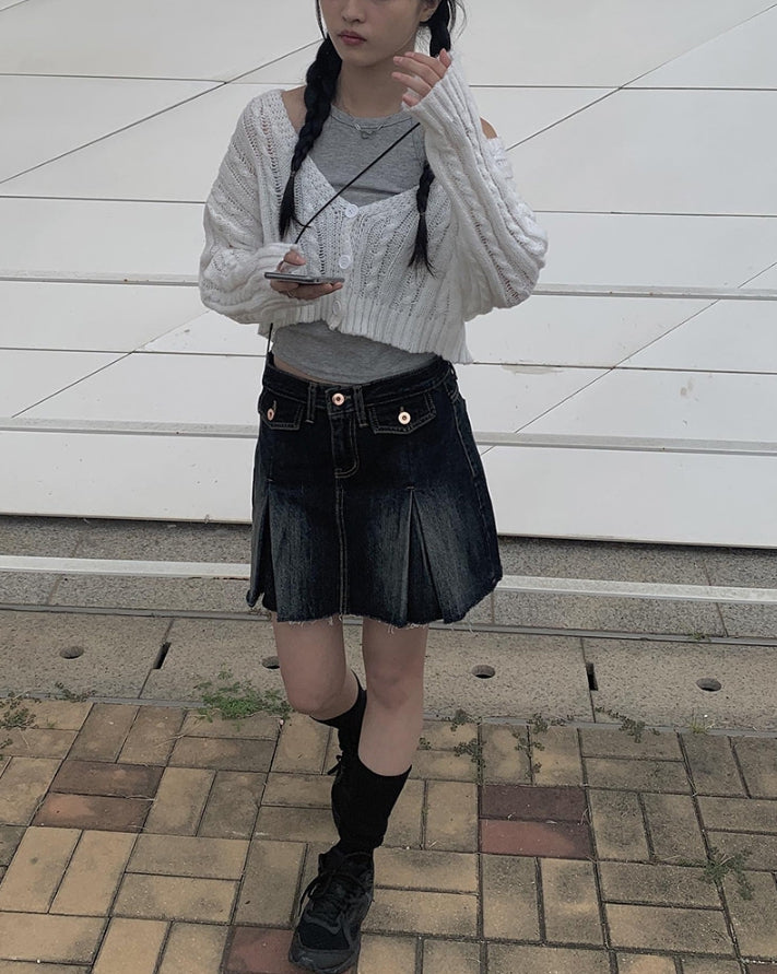 Koku denim pocket pleated skirt