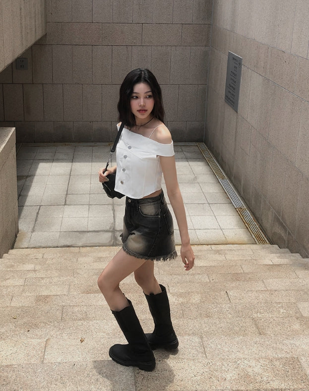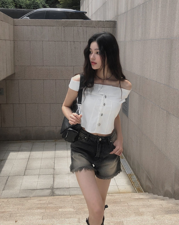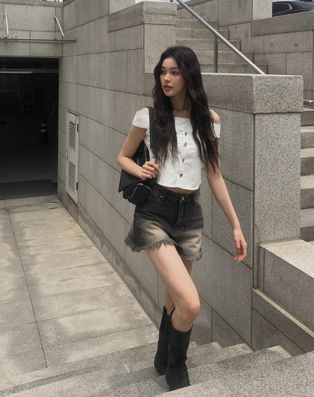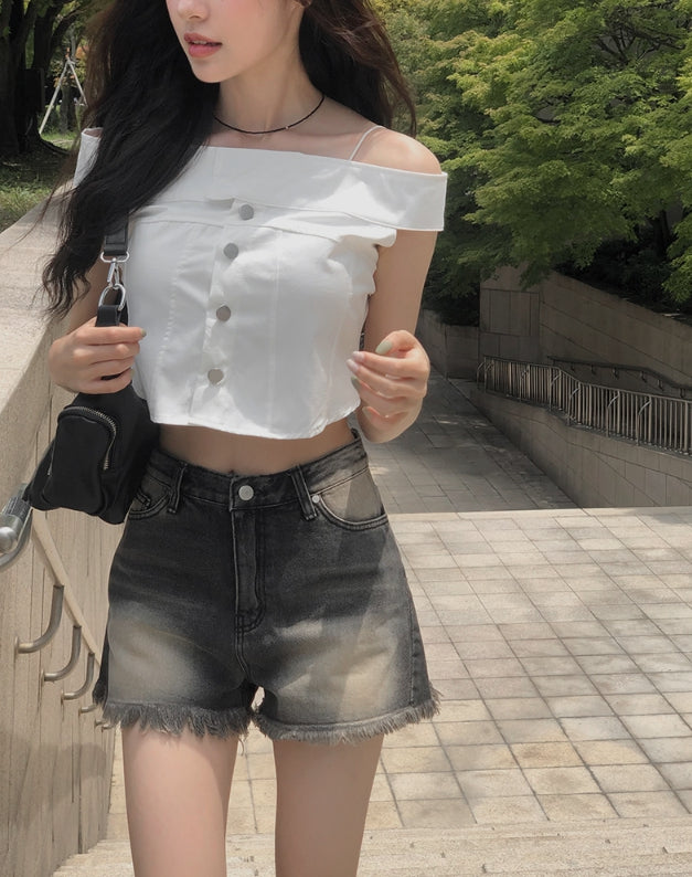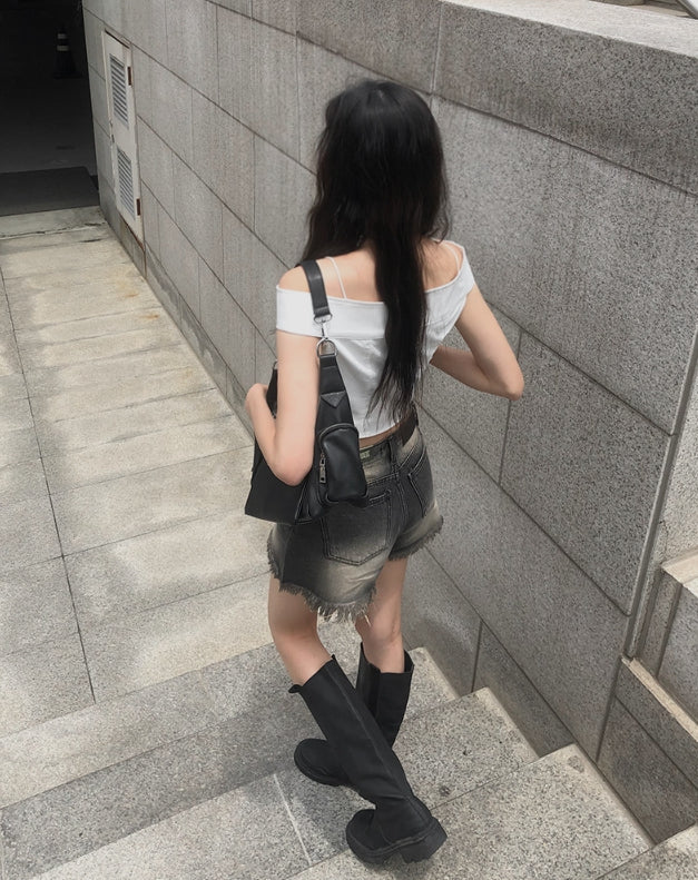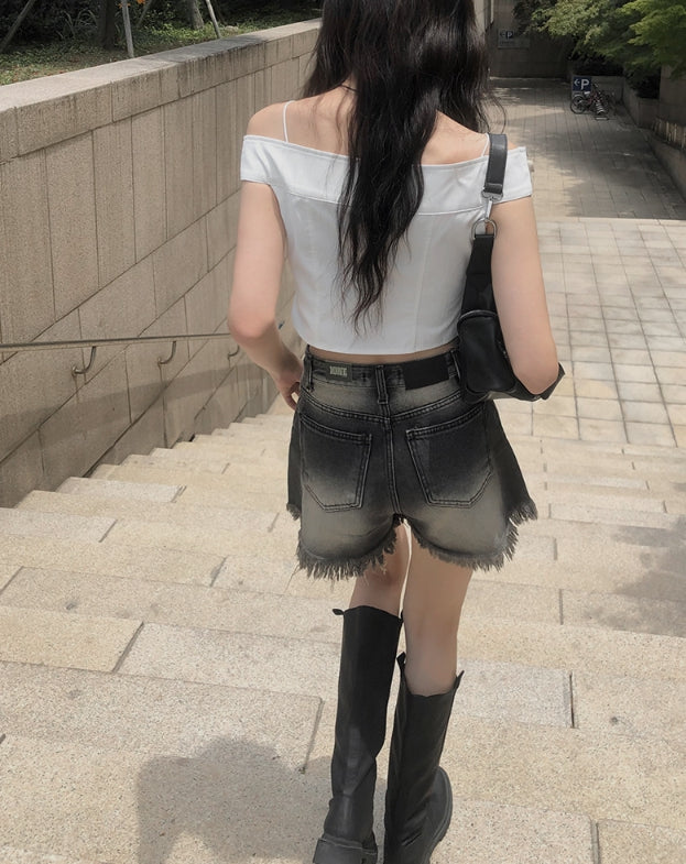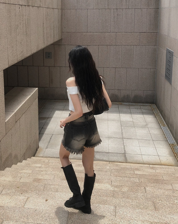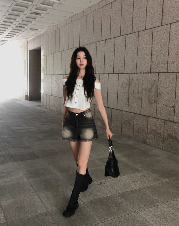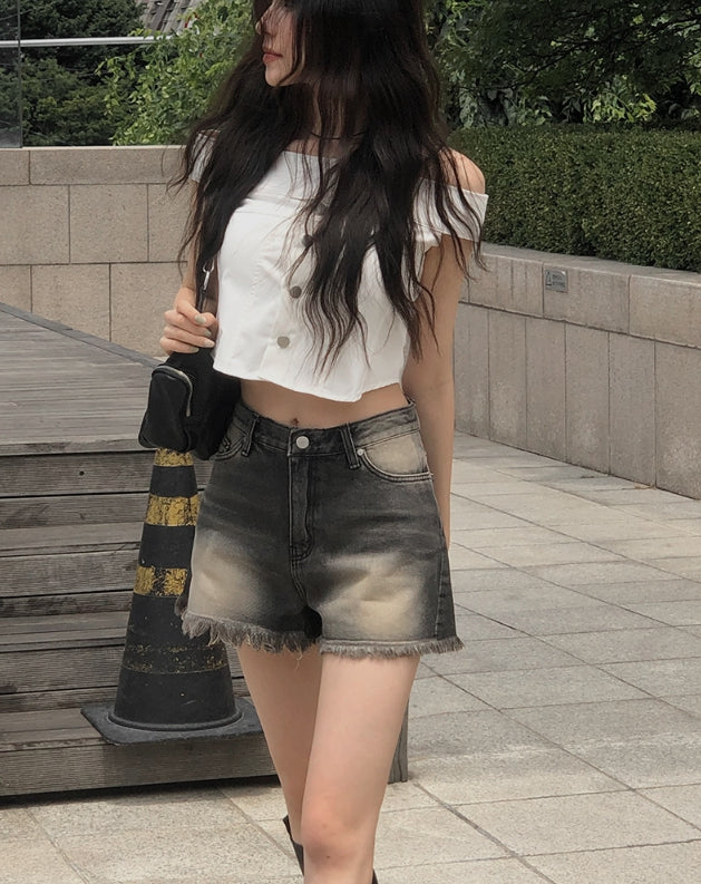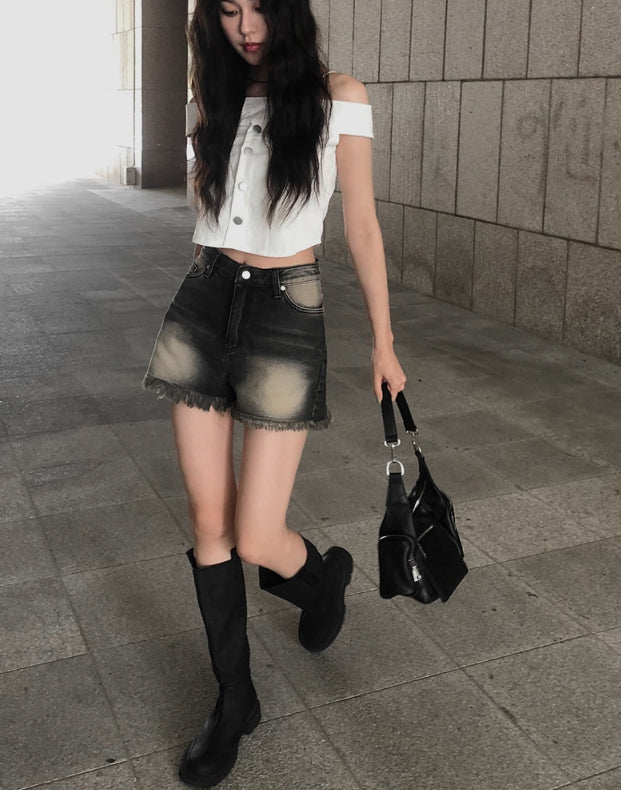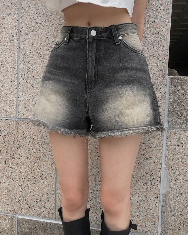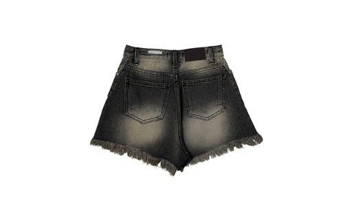 レオンダメージウォッシュ加工ショートデニムパンツ