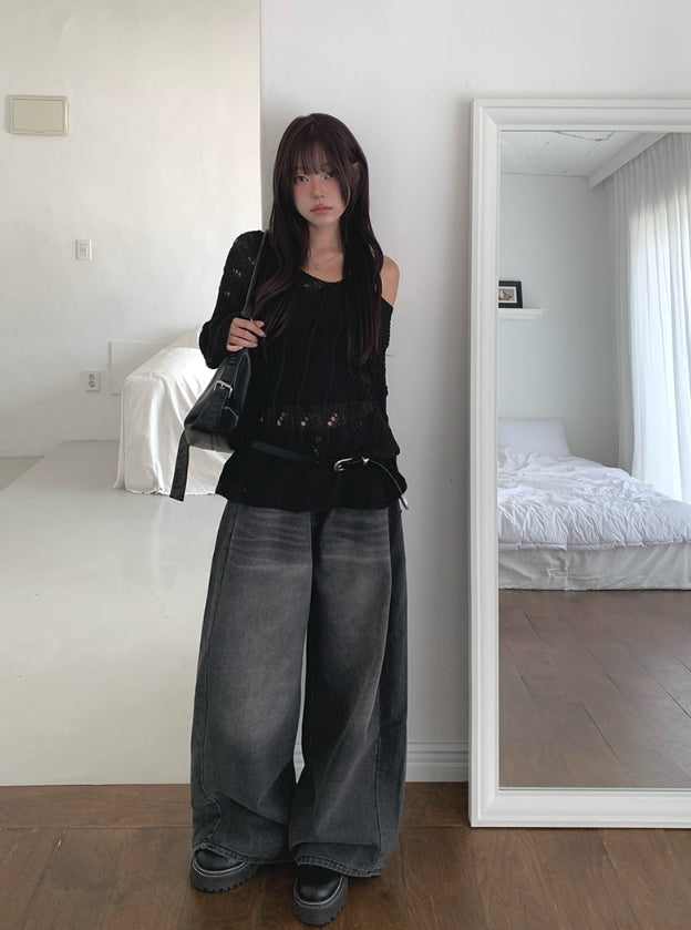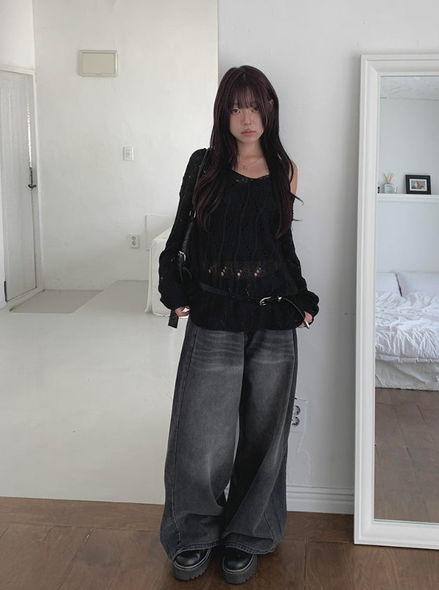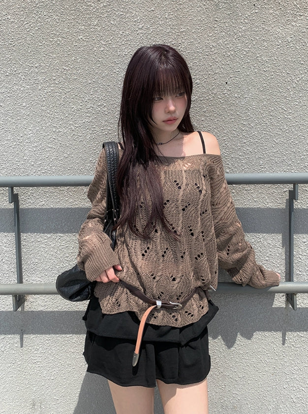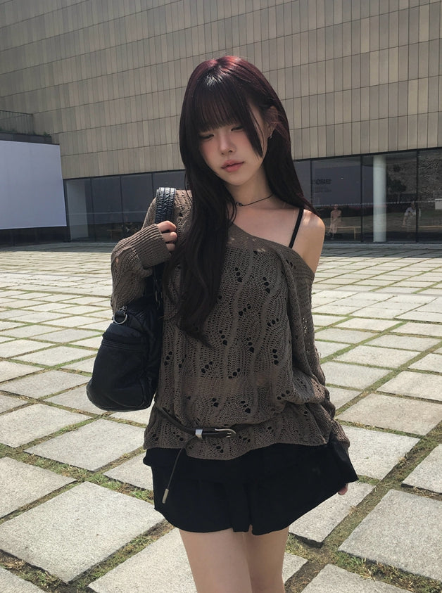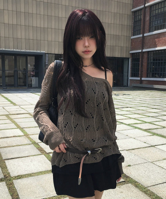 Linder Mesh See-Through Loose-Fit One-Shoulder Knit