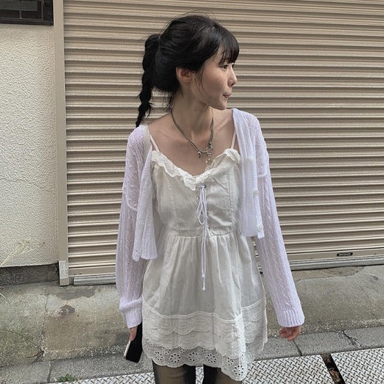ルコケーブルVクロップカーディガン