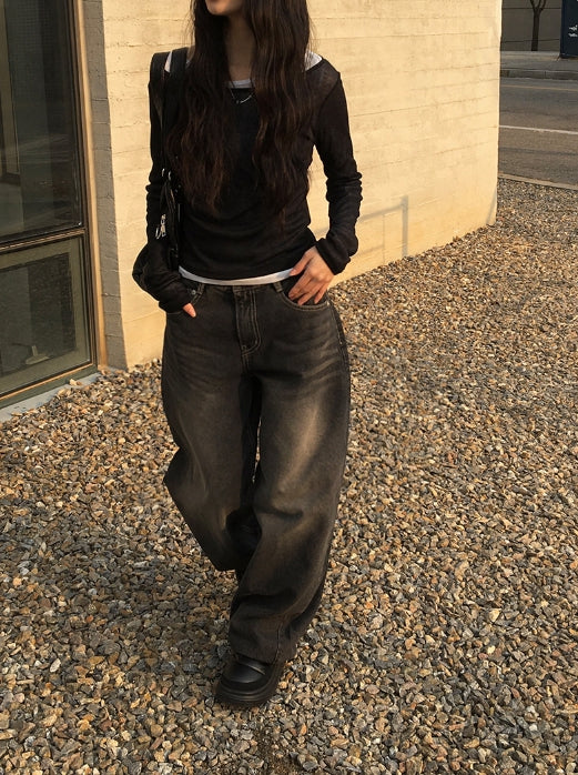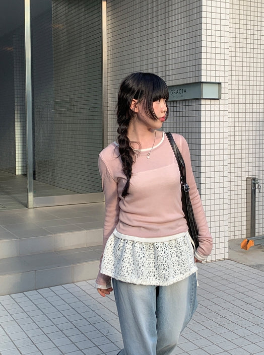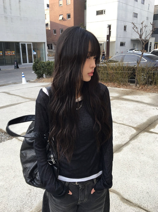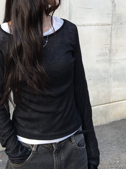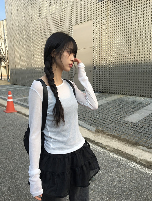 [1+1][MADE] Hanky Tencel Layered See-through Long Sleeve T-Shirt