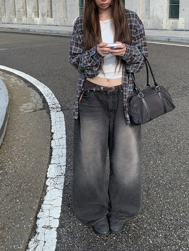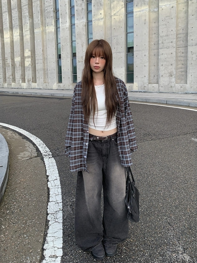 [MADE]ミニュピーチ起毛チェックオーバーフィット長袖シャツ