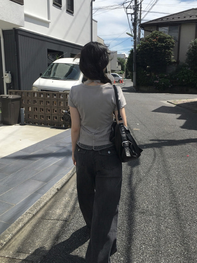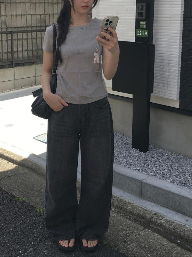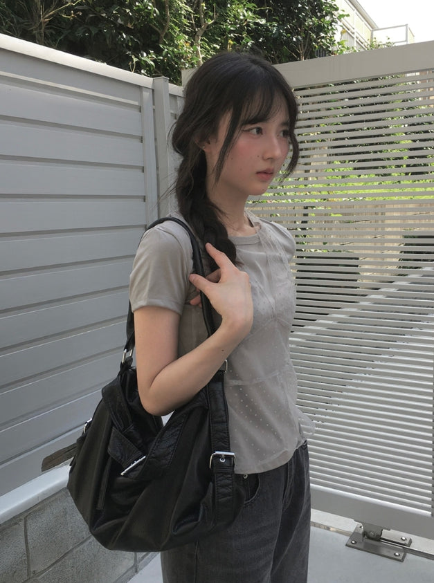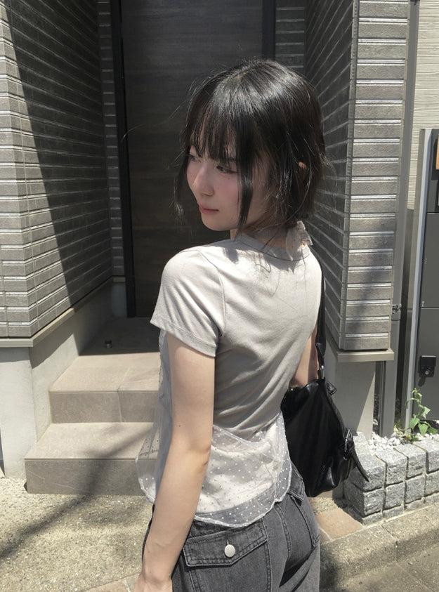 Mens Dot See-Through Layered Short Sleeve T-Shirt