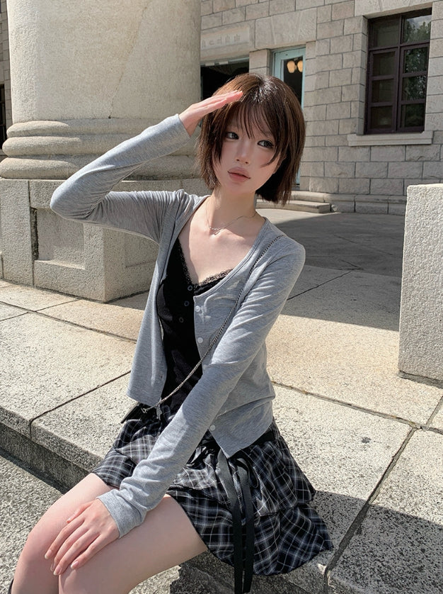 Muel Daily U-Neck Long Sleeve Slim Cardigan