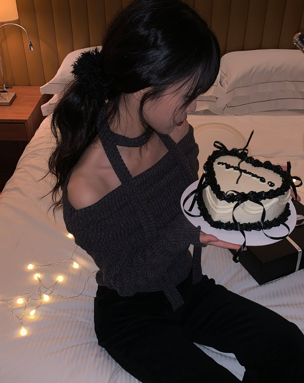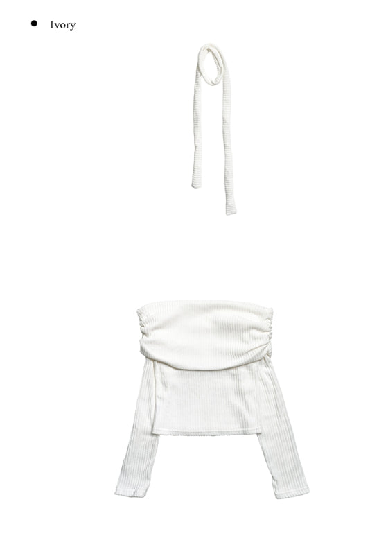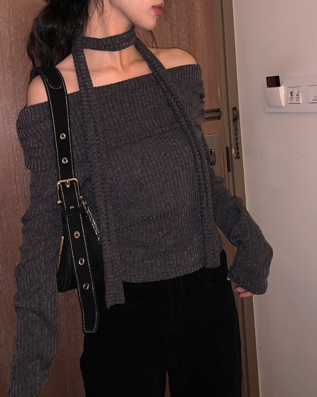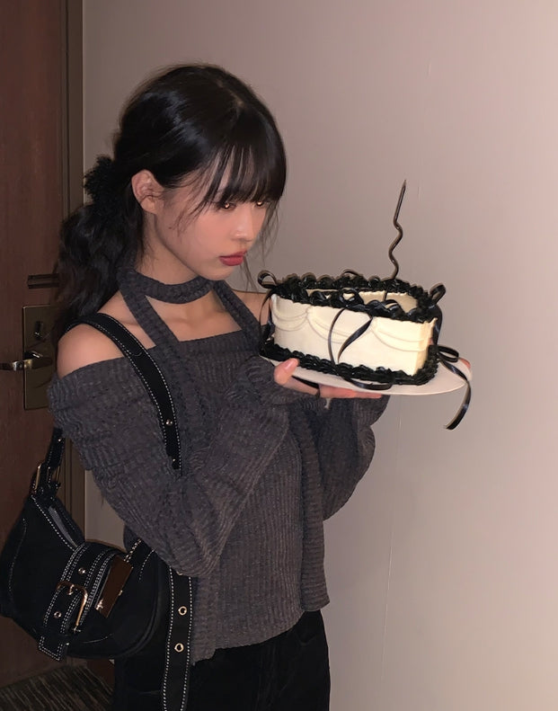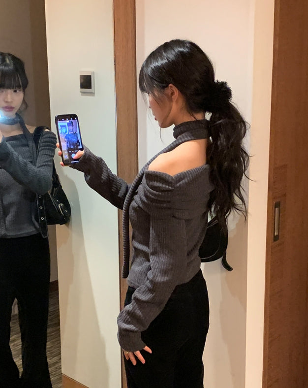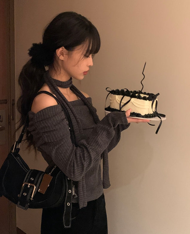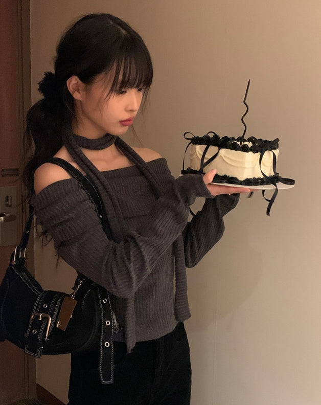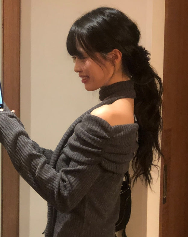 [Muffler set] Seleo Off-Shoulder Choker Knit Muffler Set