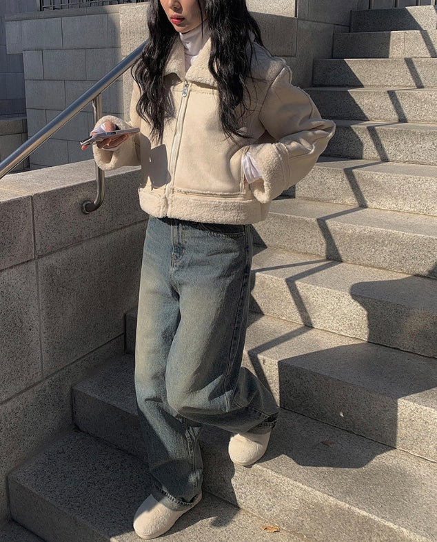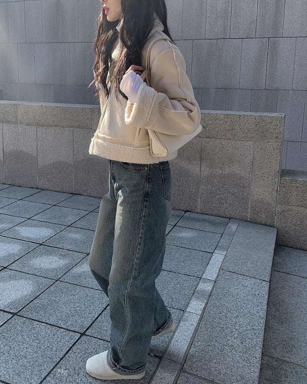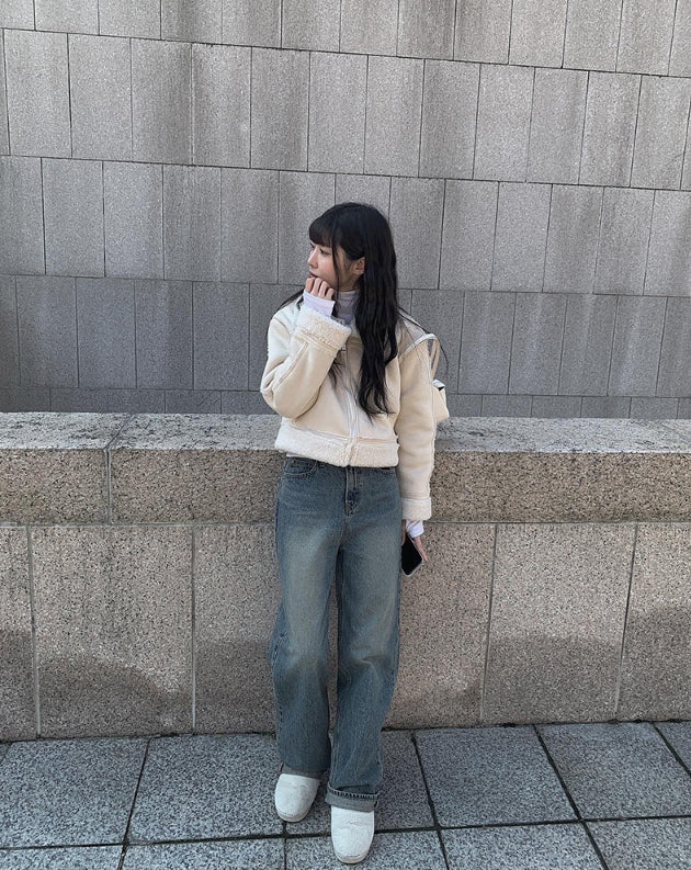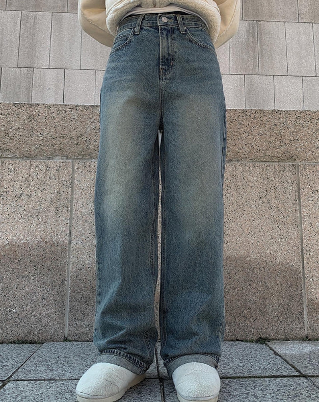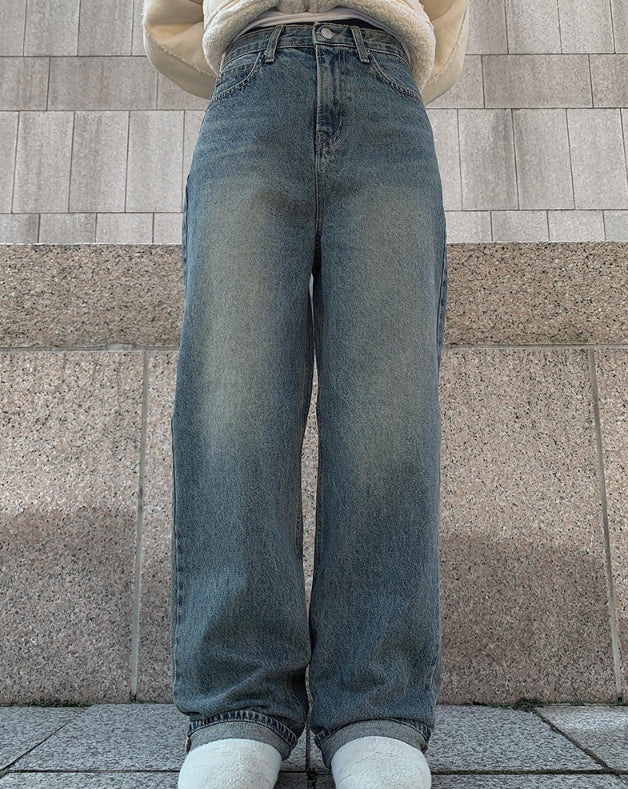 Naf washed denim wide pants