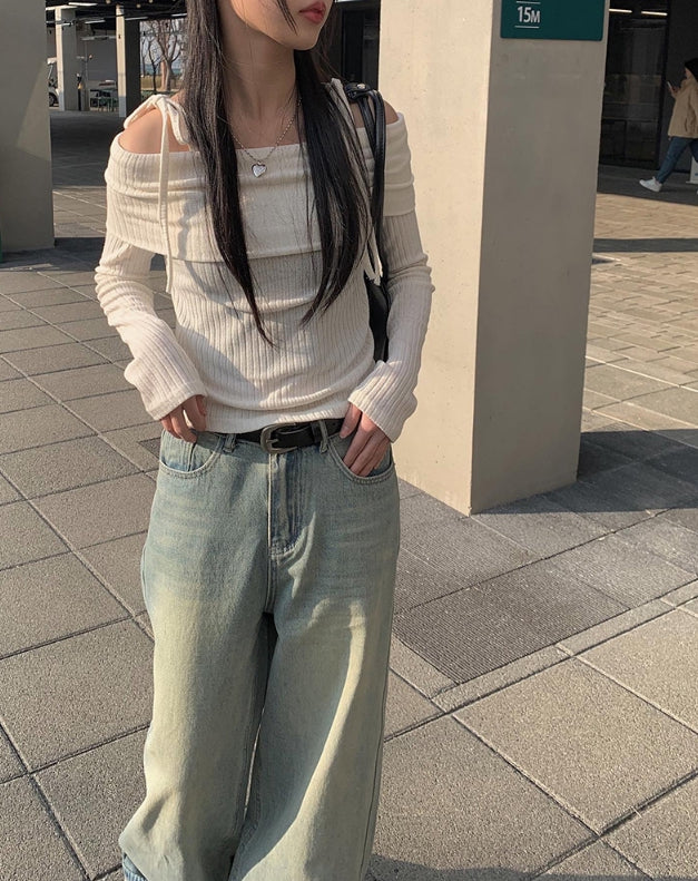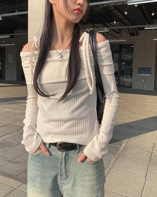 Nez Off-Shoulder Ribbon T-shirt