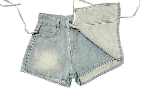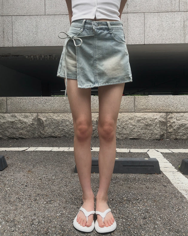 Nibeo Denim Ribbon Wrap Skirt Pants