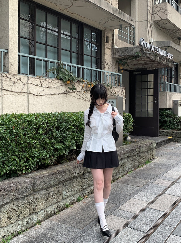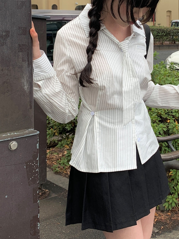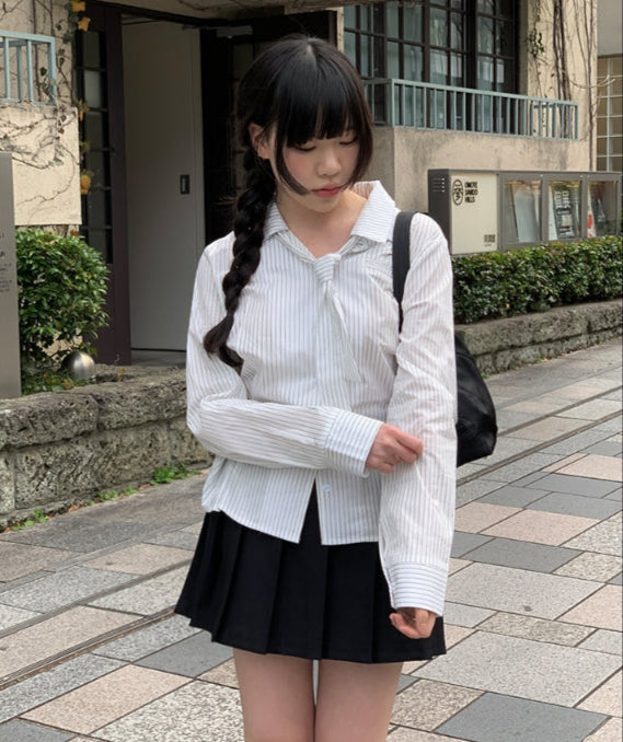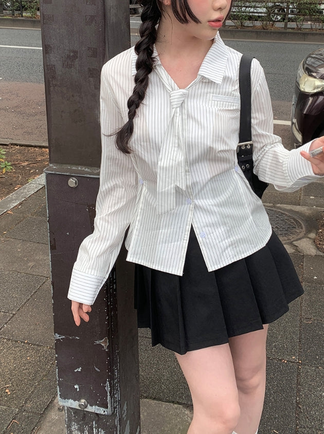 Oke Stripe Tie Shirt Blouse