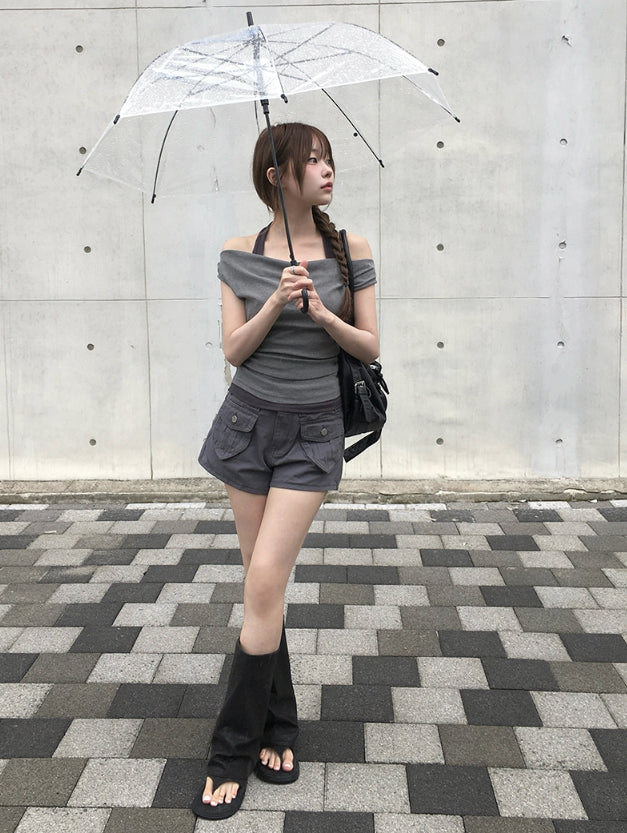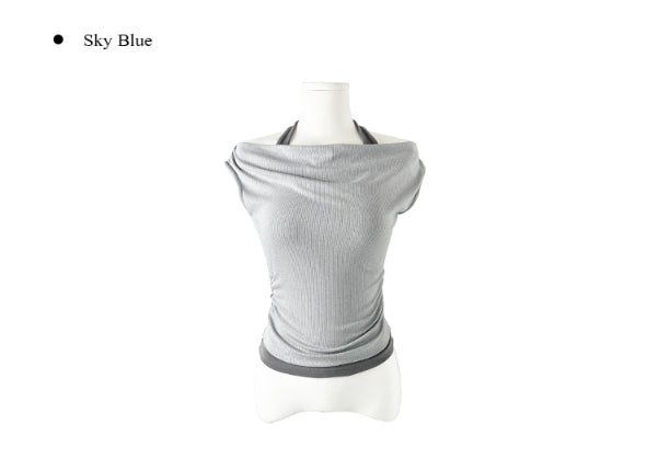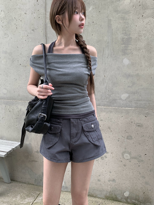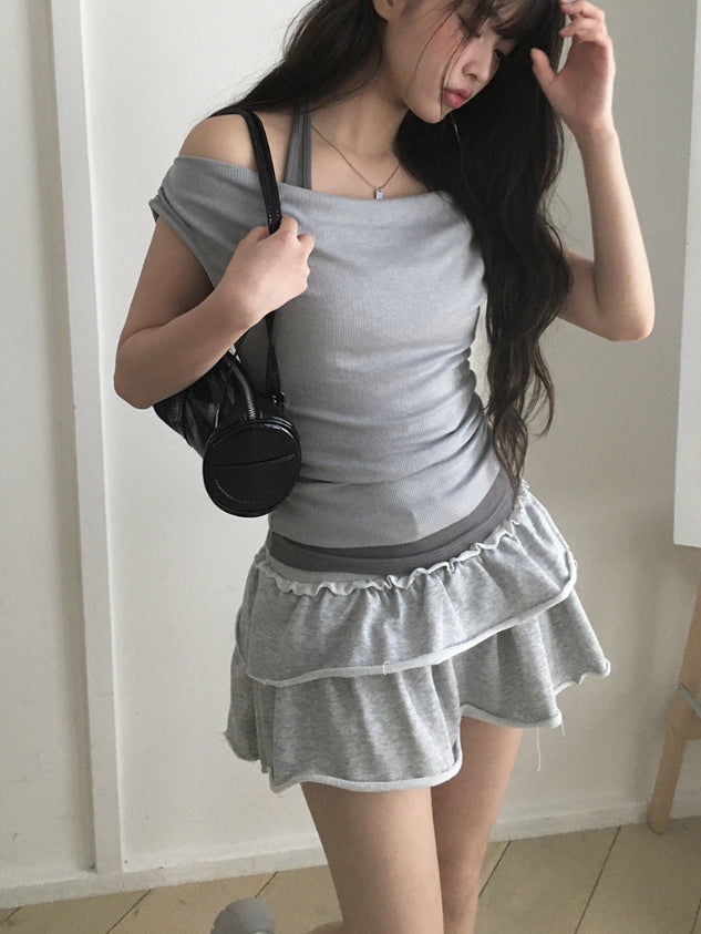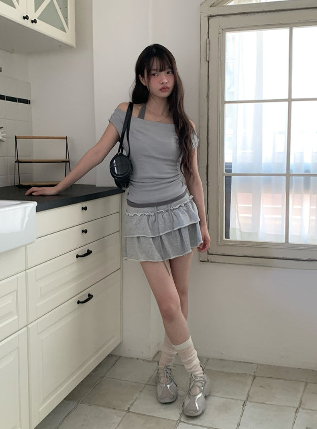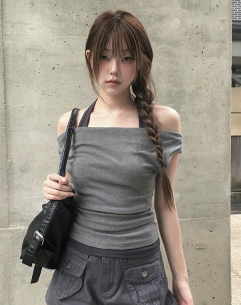 Orin Halter Layered Off-Shoulder Short Sleeve T-Shirt