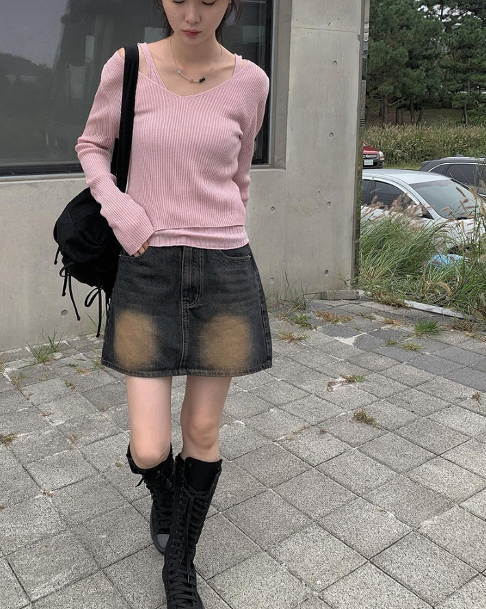 ピービーウォッシングジーンズデニムミニキュロットスカート
