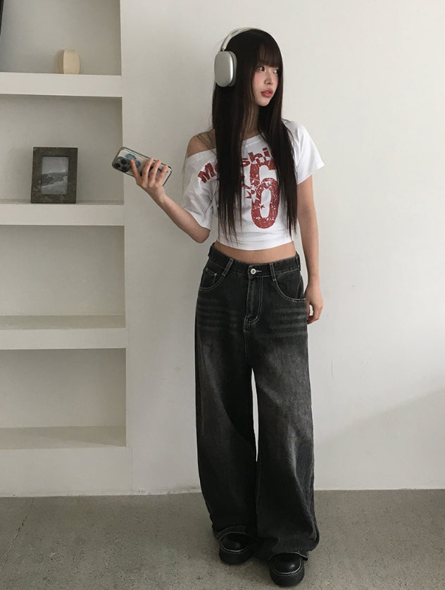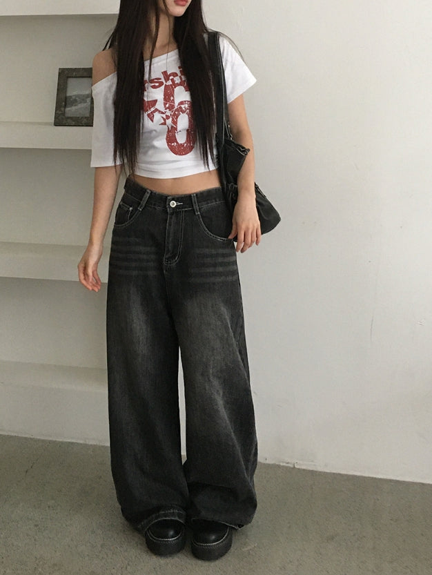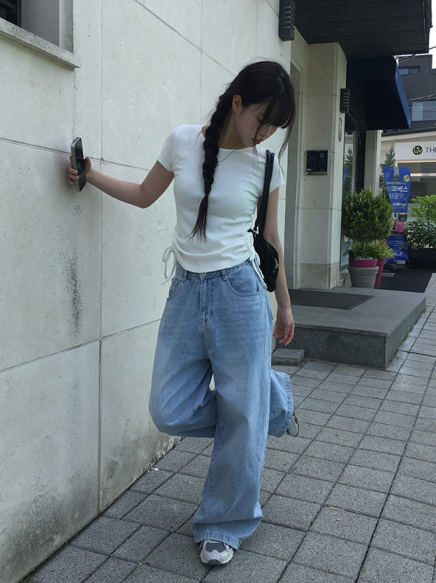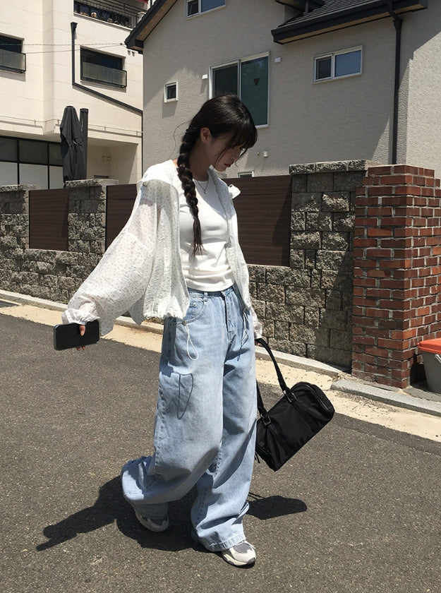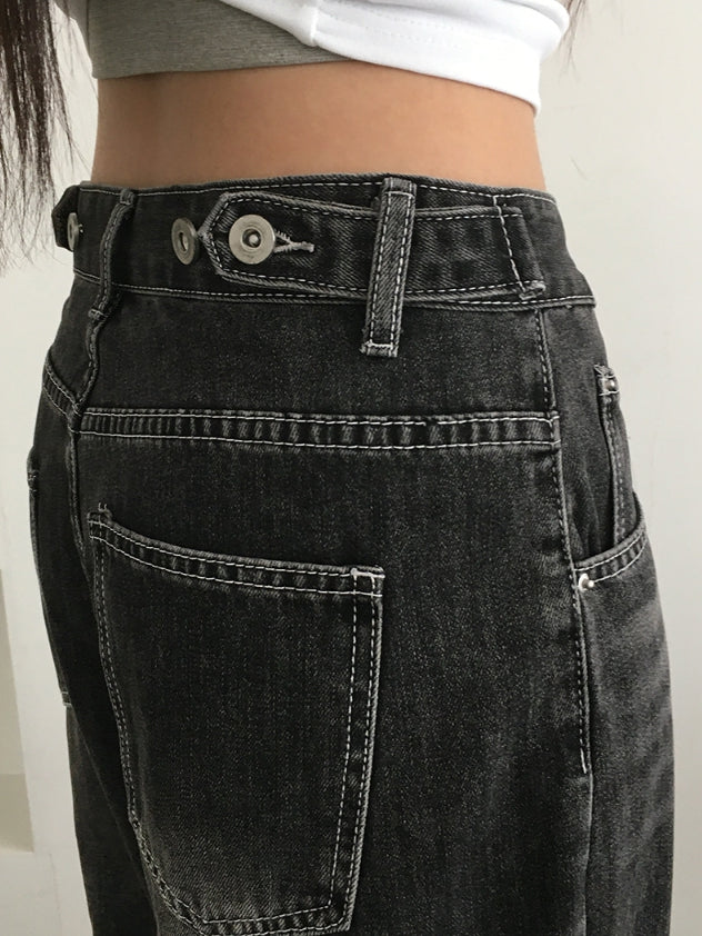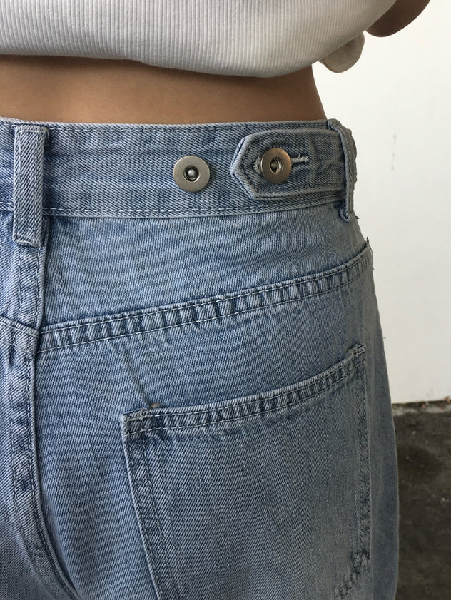 Pek Summer Adjust Snap Washing Denim Wide Pants