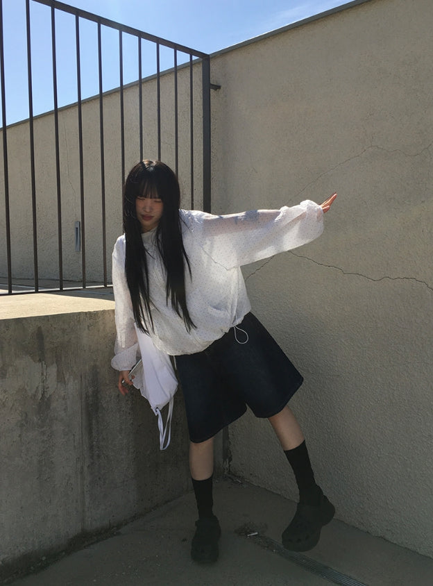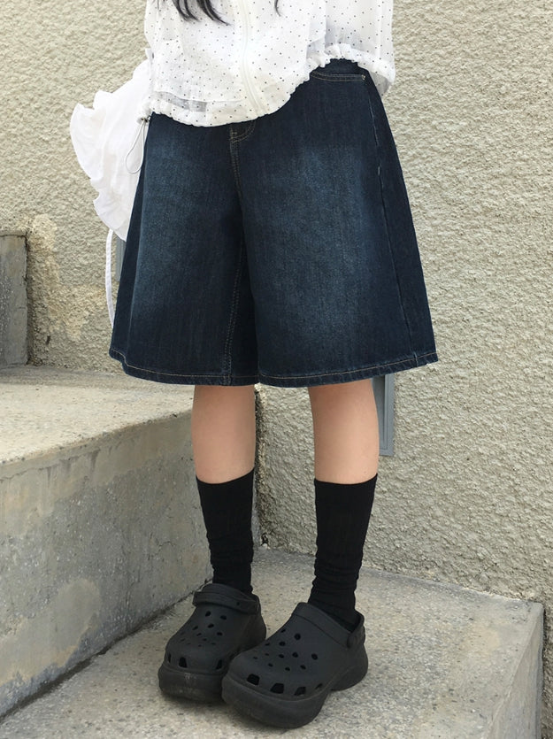 [Plan]デルショートバミューダウォッシュ加工デニムパンツ