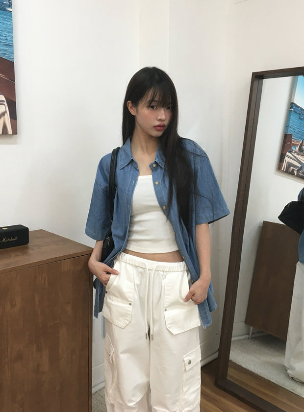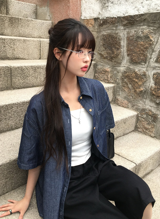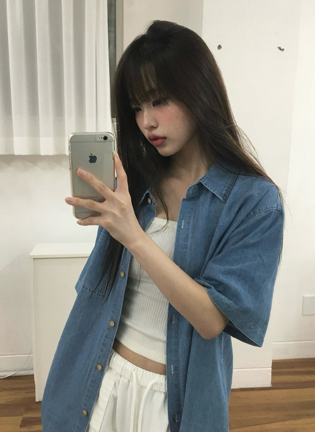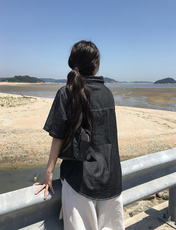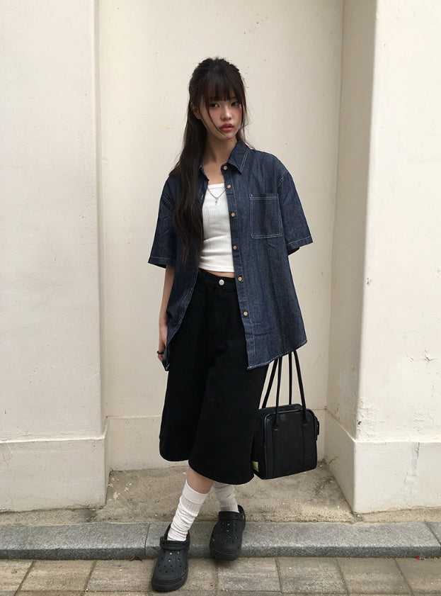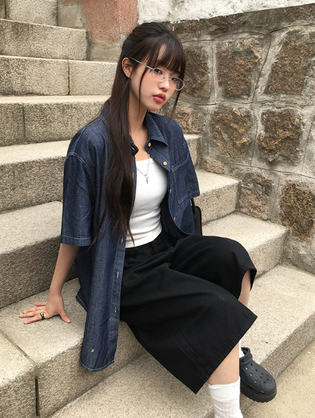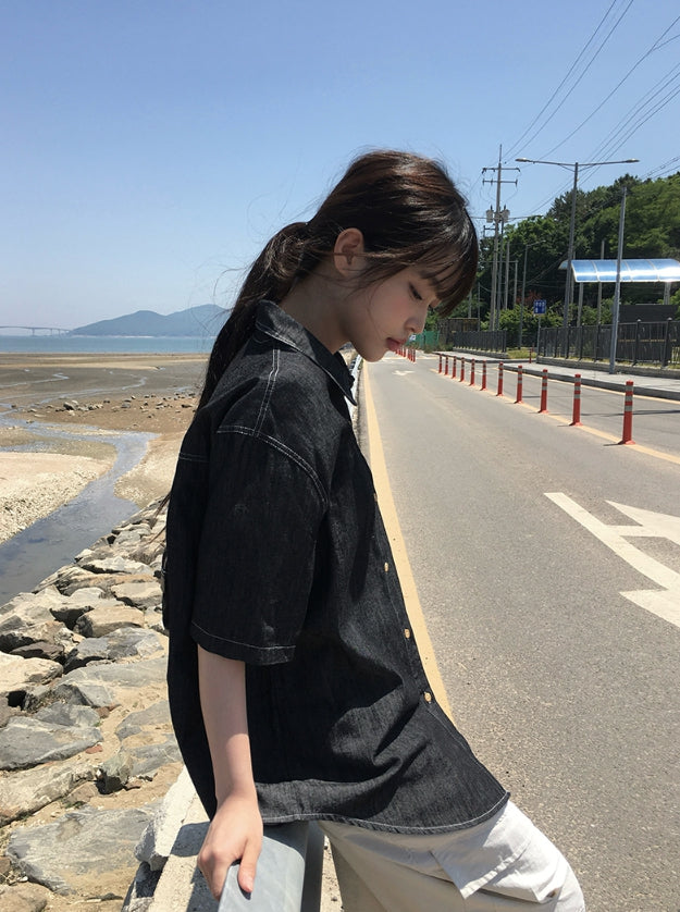 [Planning] Freck Denim Overfit Short Sleeve Denim Shirt