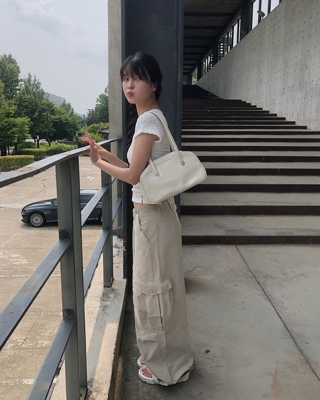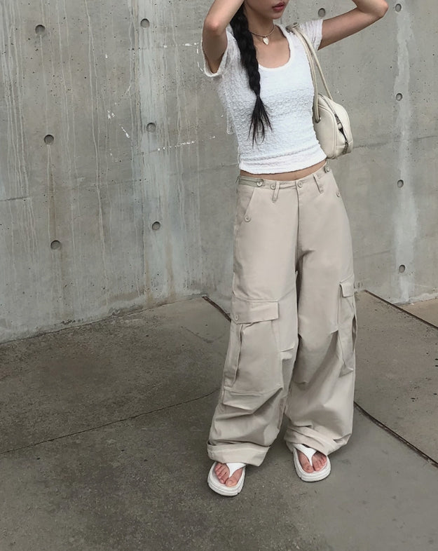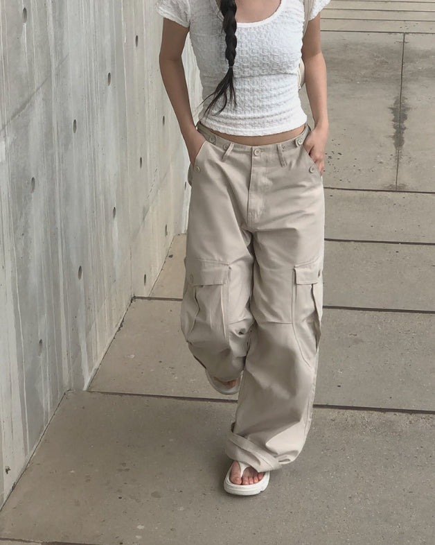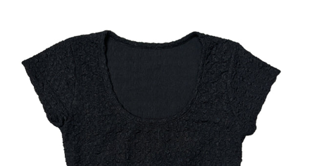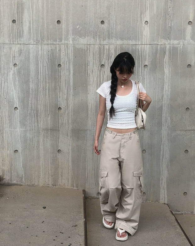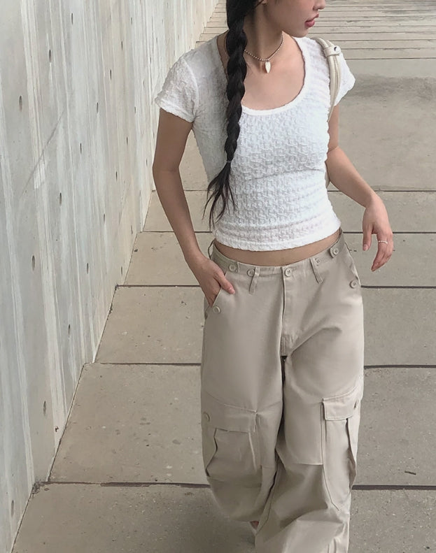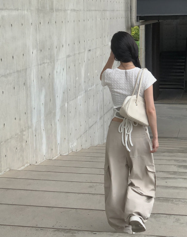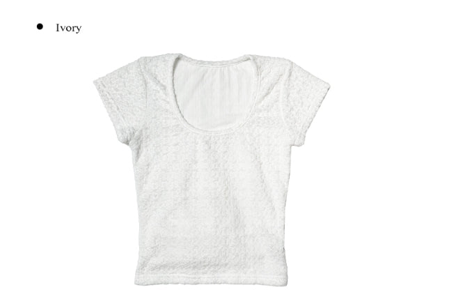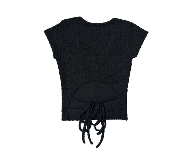 Pomme U Neck Back Slit Strap Short Sleeve Tee