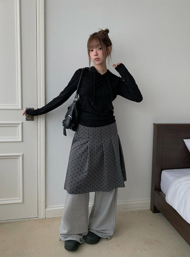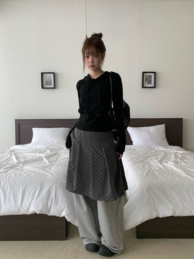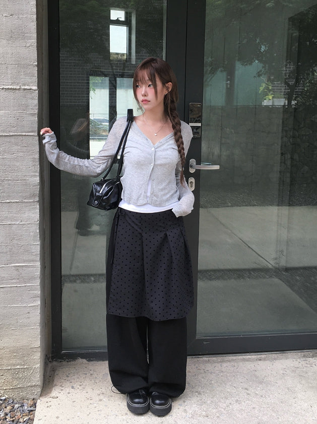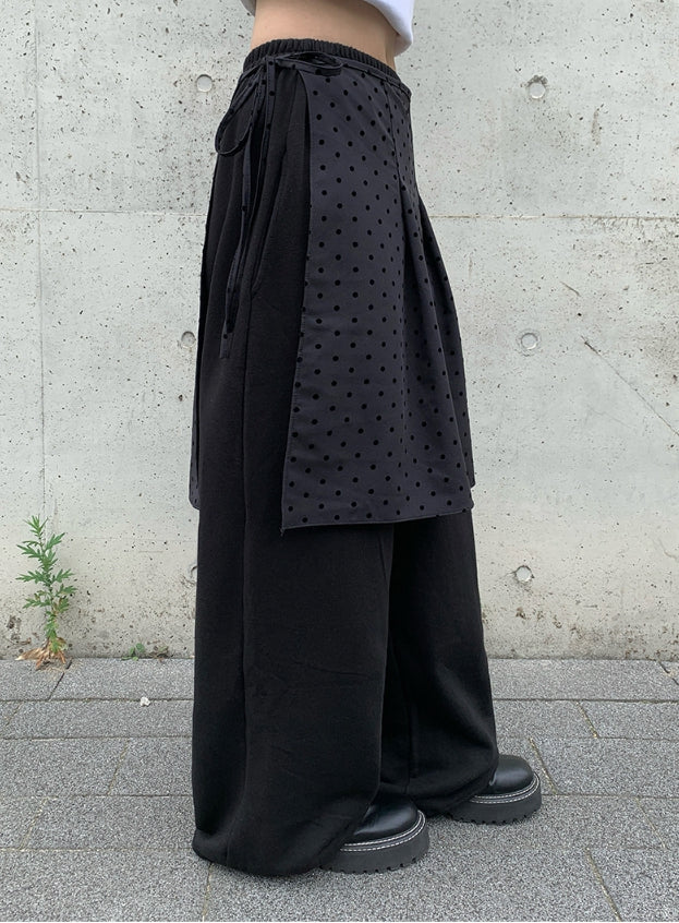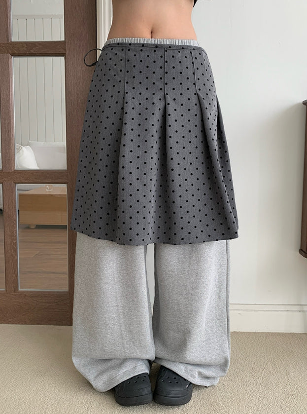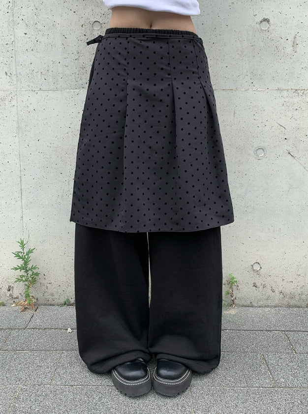 Ponce Dot Wrap Skirt Layered Pants Set