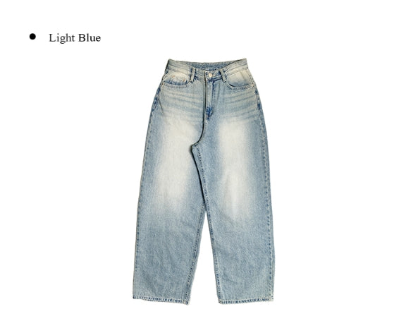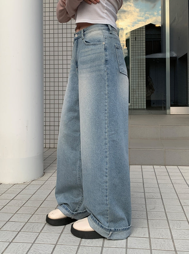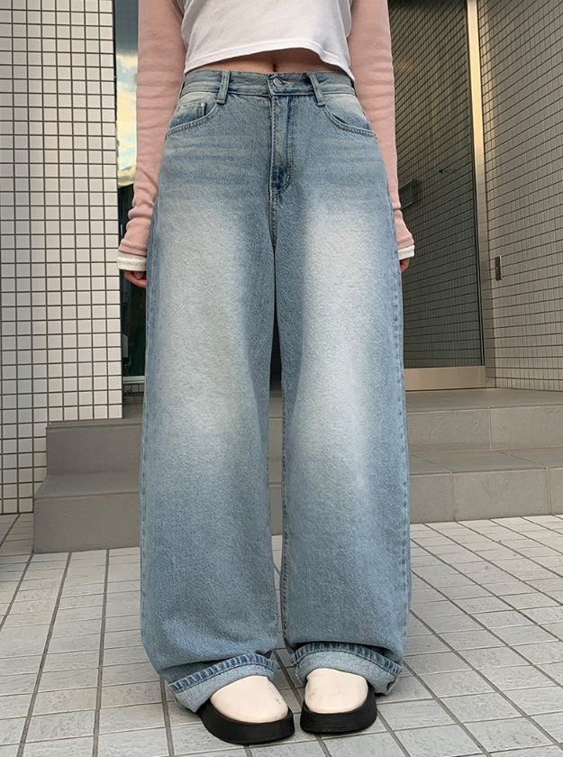 ポユライトブルーウォッシュ加工デニムワイドパンツ