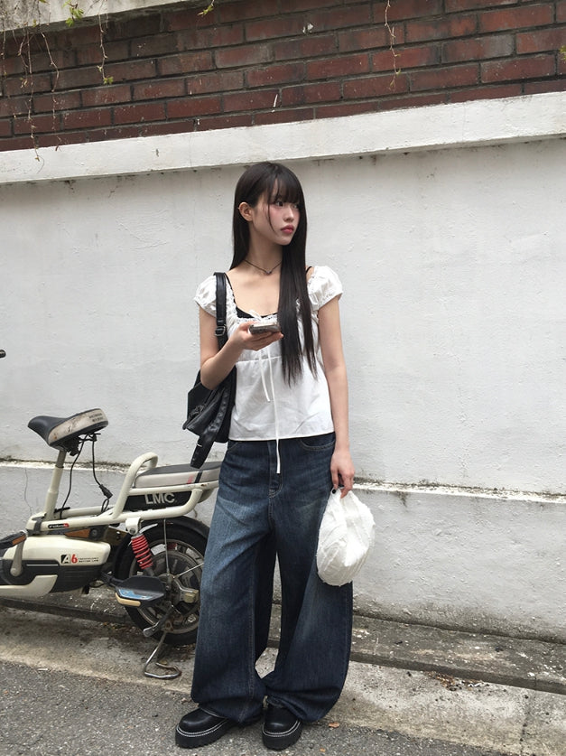 リックルサマーワイドデニムウォッシュ加工パンツ