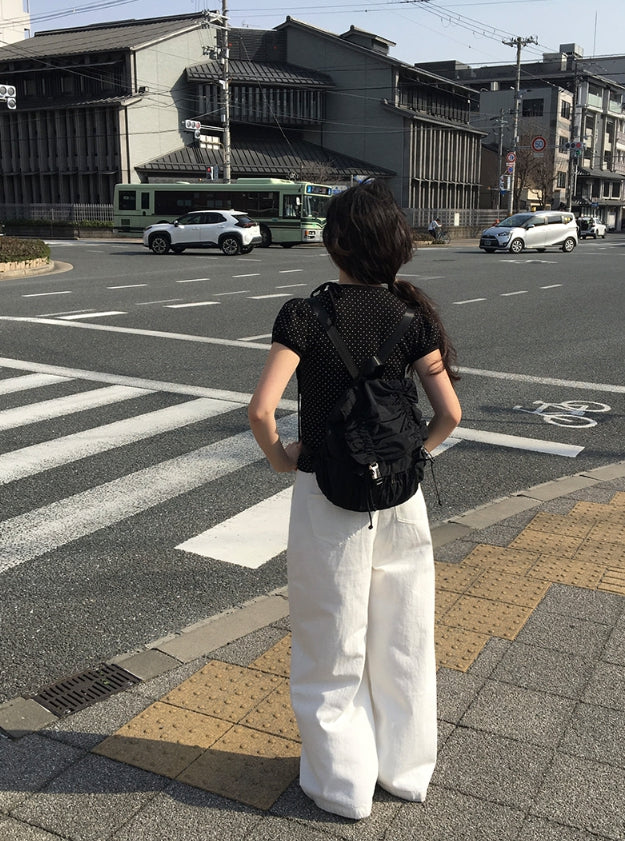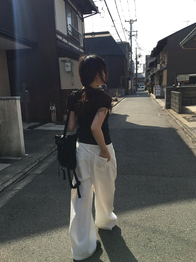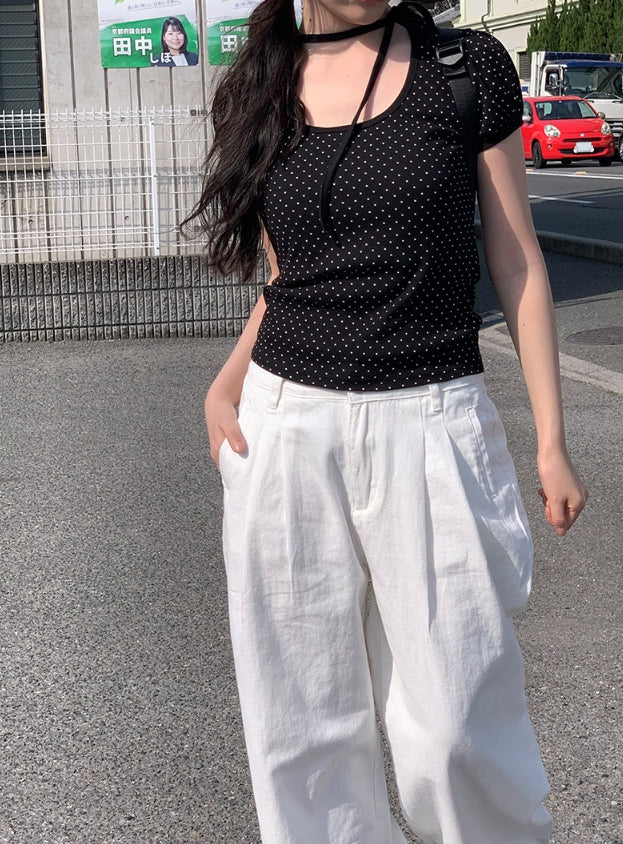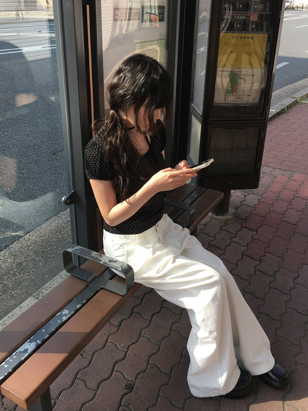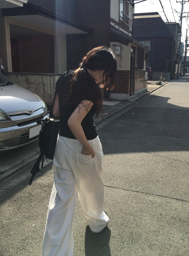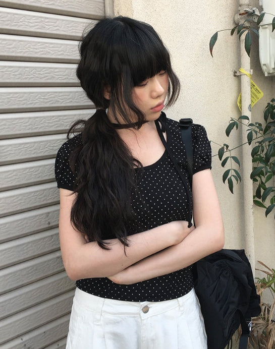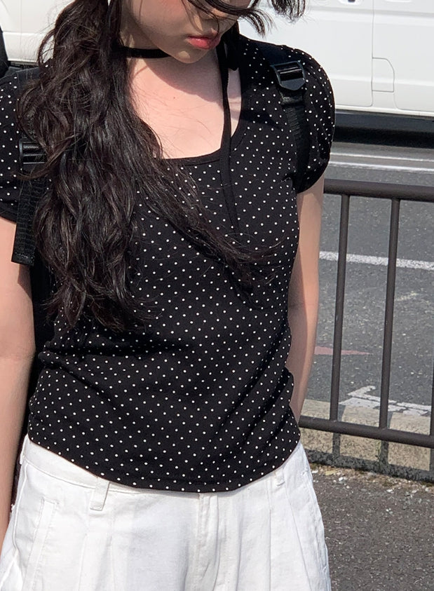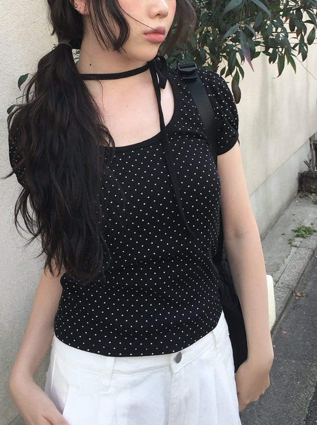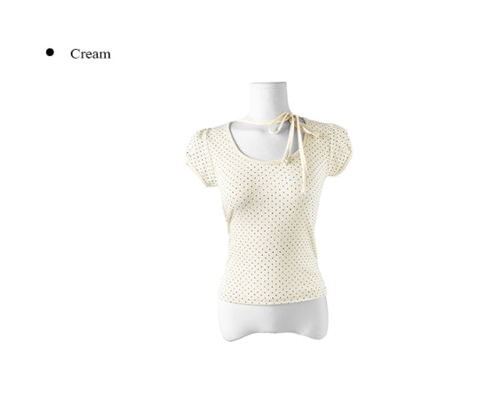 Riyoung Dot Short Sleeve Ribbon Puff T-shirt