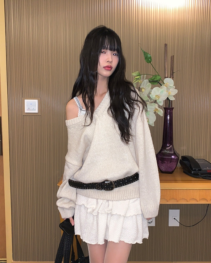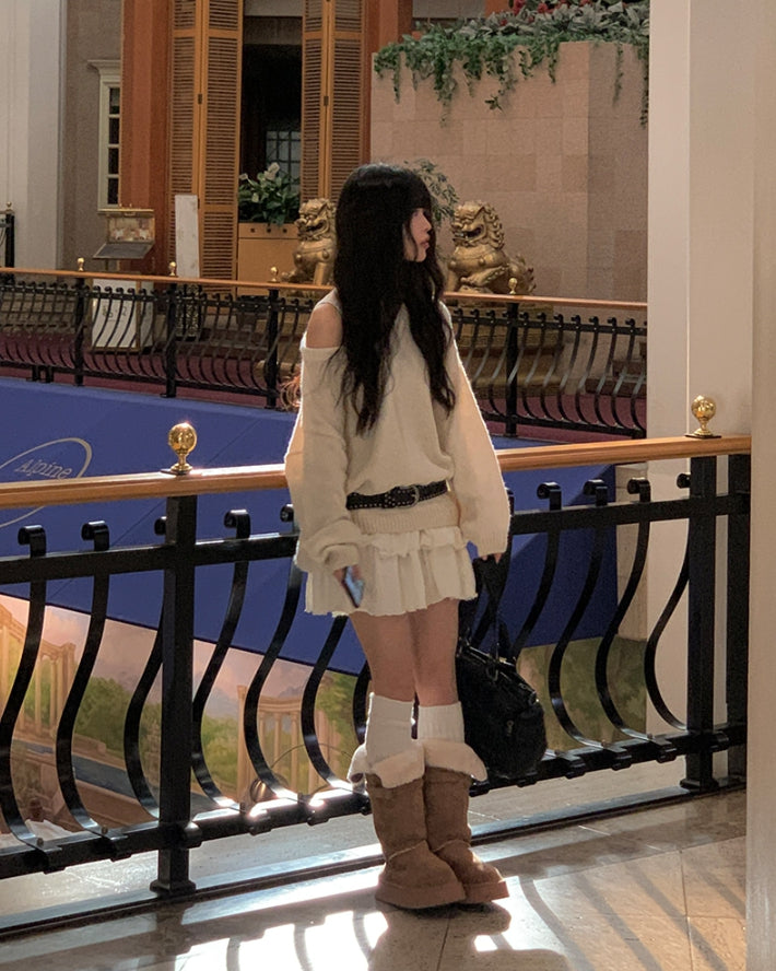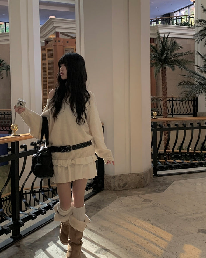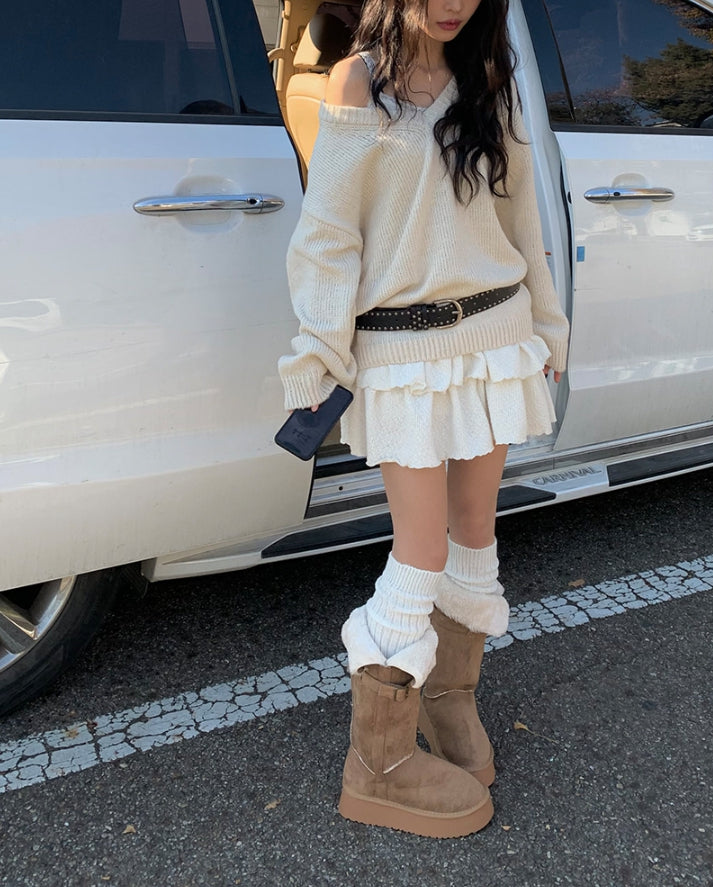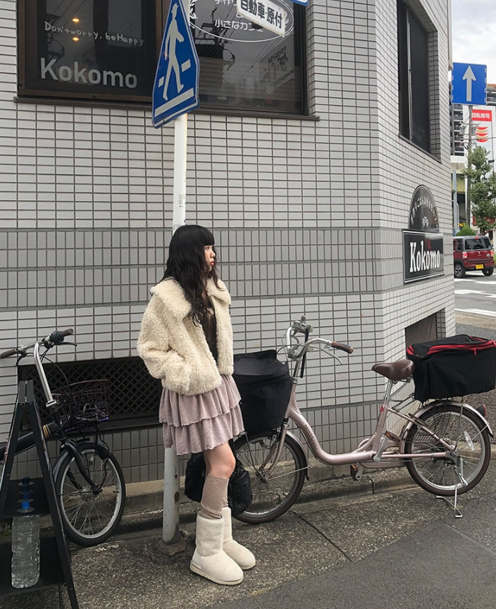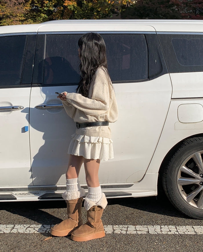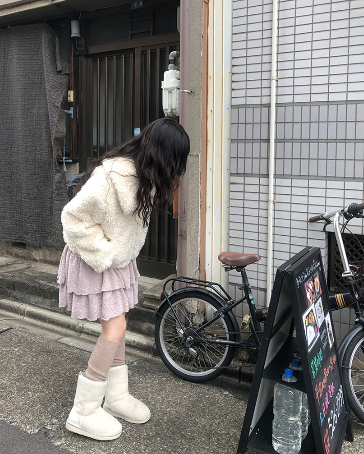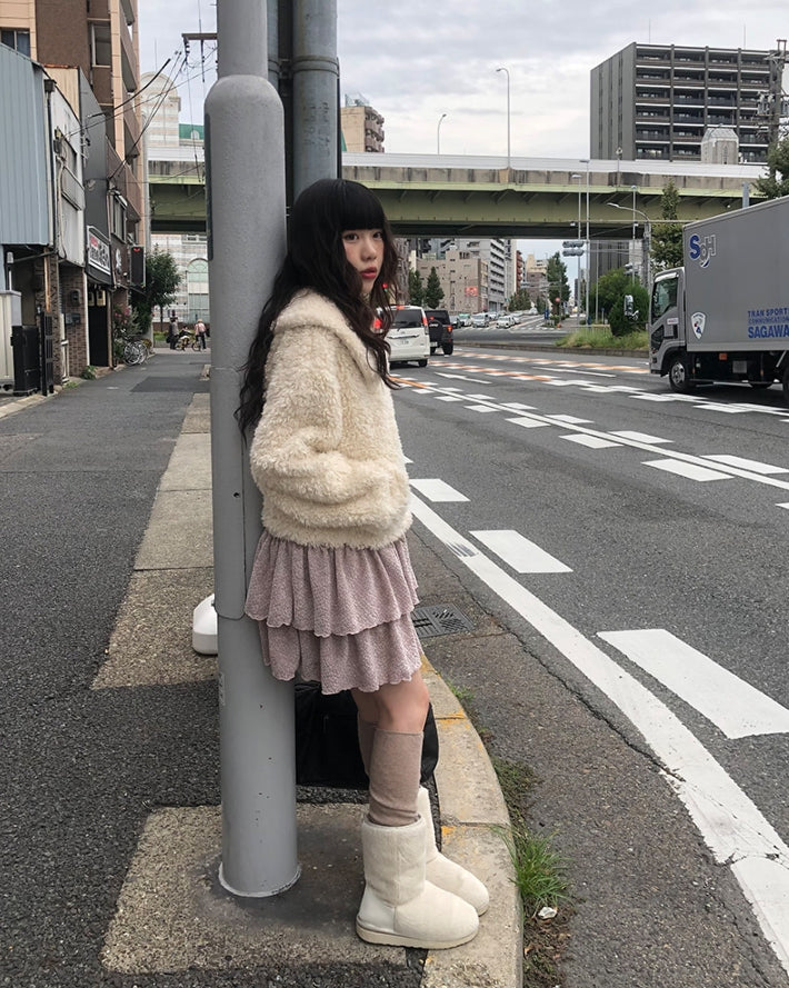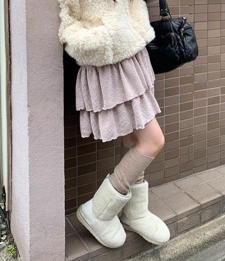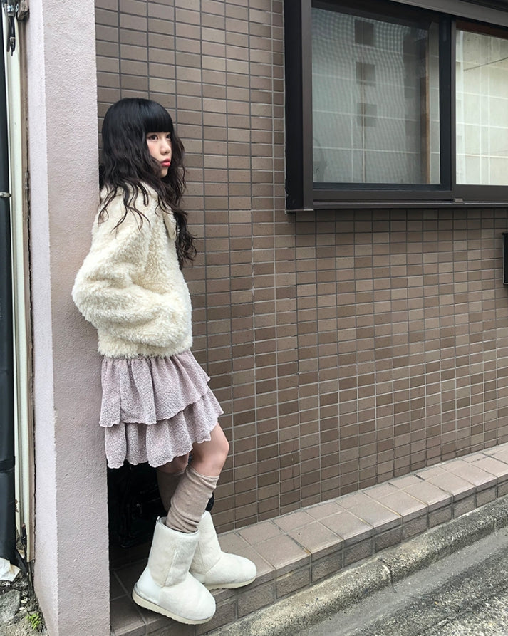 [冬スカート/インナーパンツ付き]サンドティアードツイードミニスカート