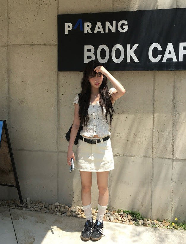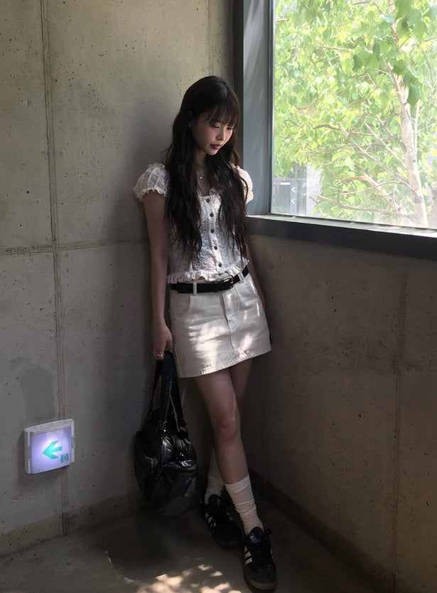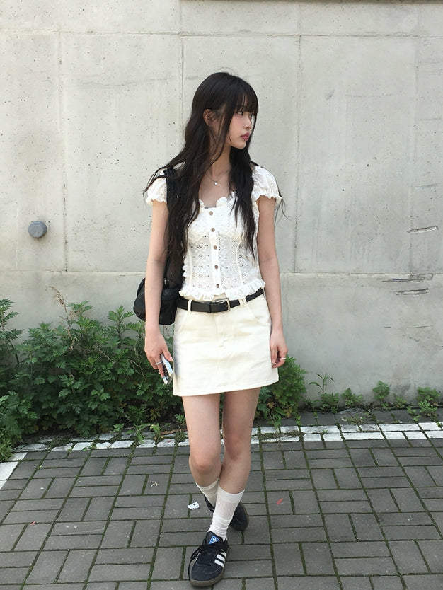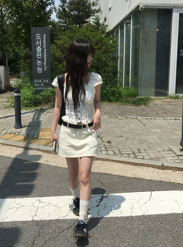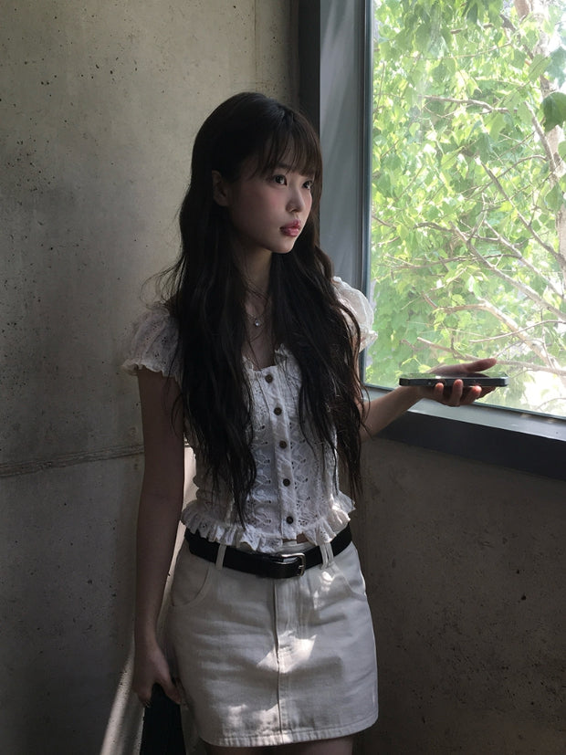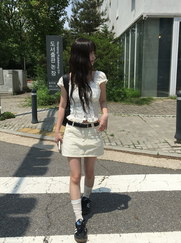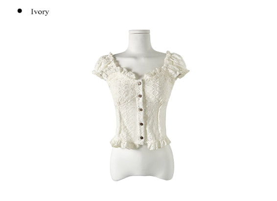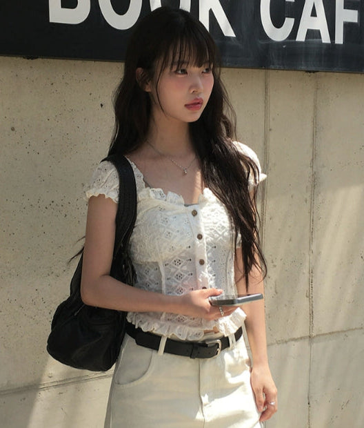 Shaon Punching Frill Lace Off Shoulder Blouse
