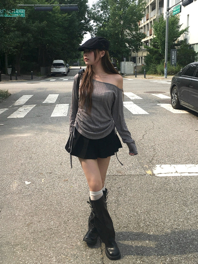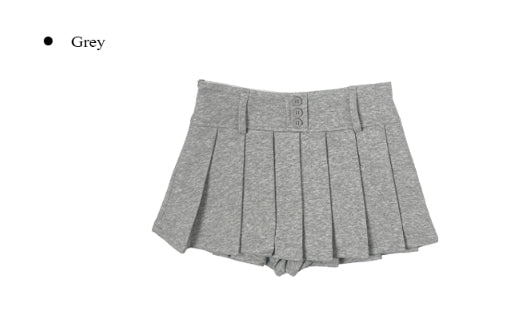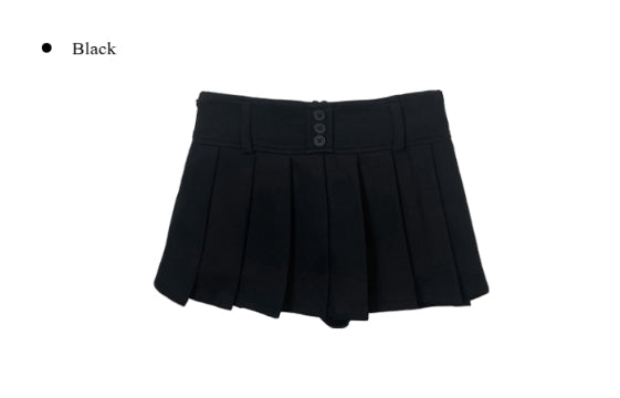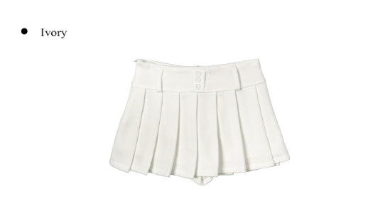 [スカートパンツ]メンディボタンプリーツミニキュロットスカート