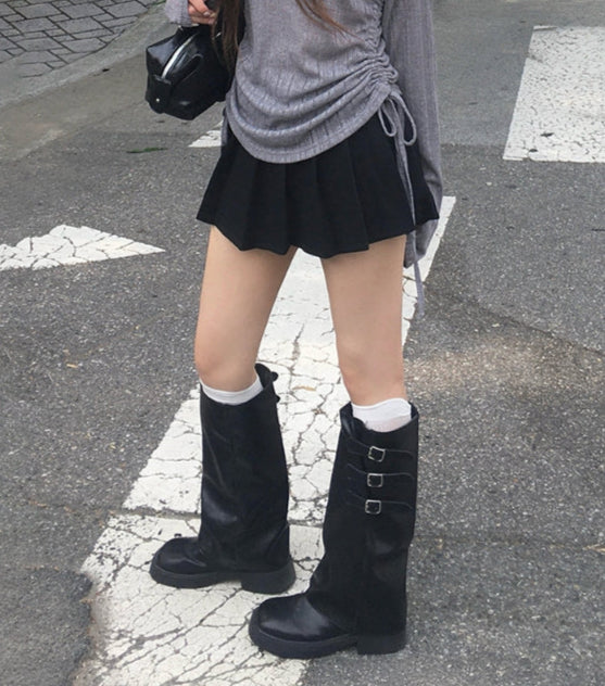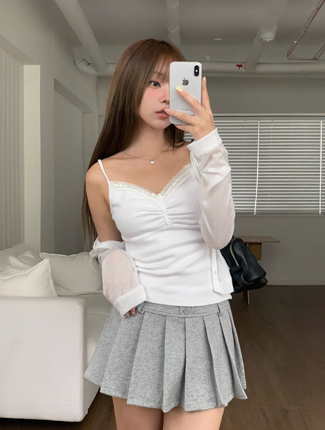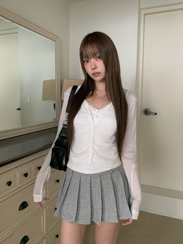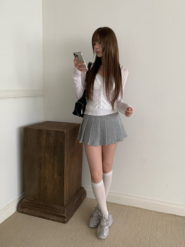 [Skirt Pants] Mendy Button Pleats Mini Skirt