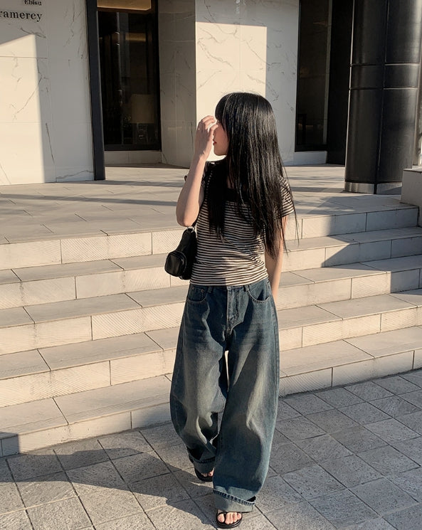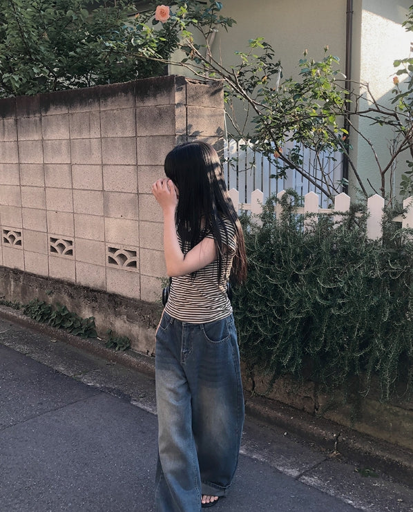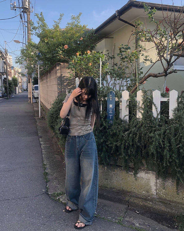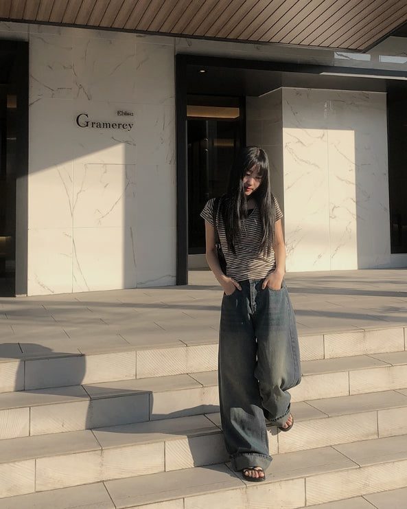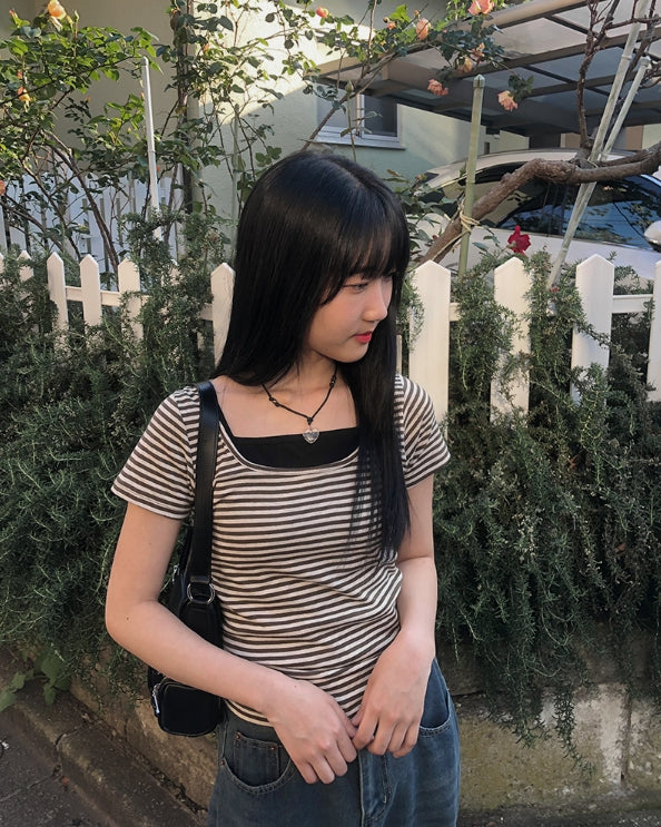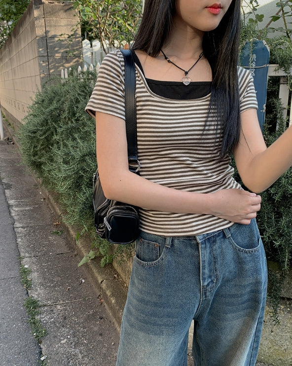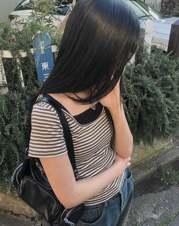 単色ストライプ半袖Tシャツ