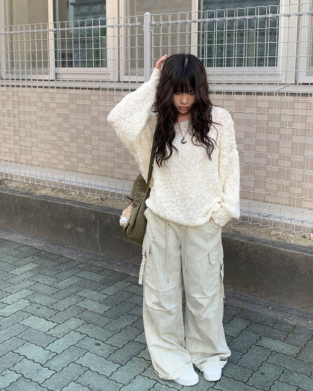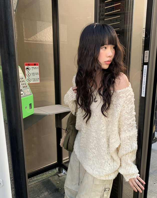 Spin Mongle Loose Fit Boucle Knit