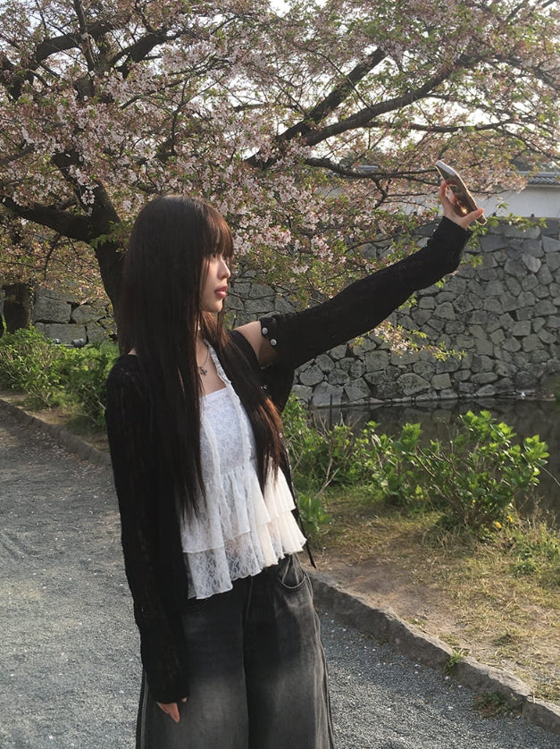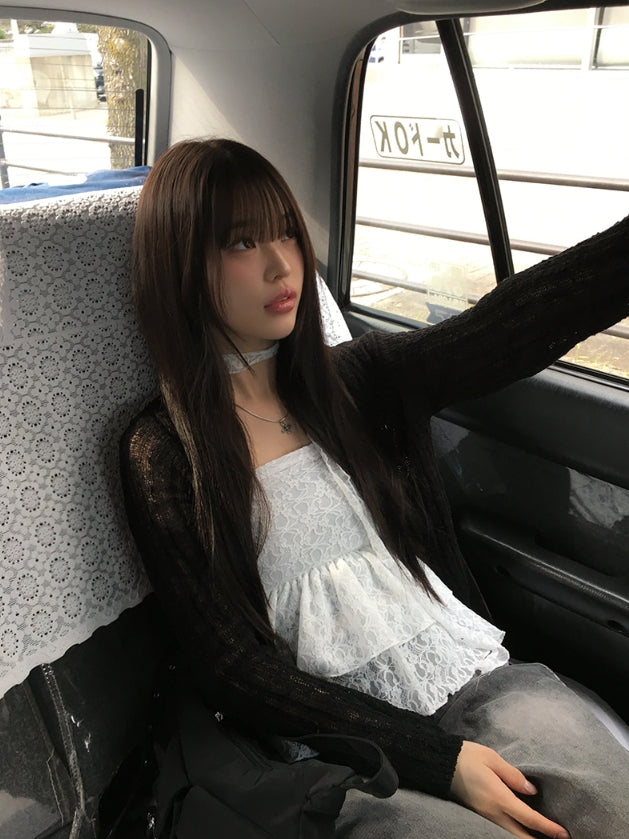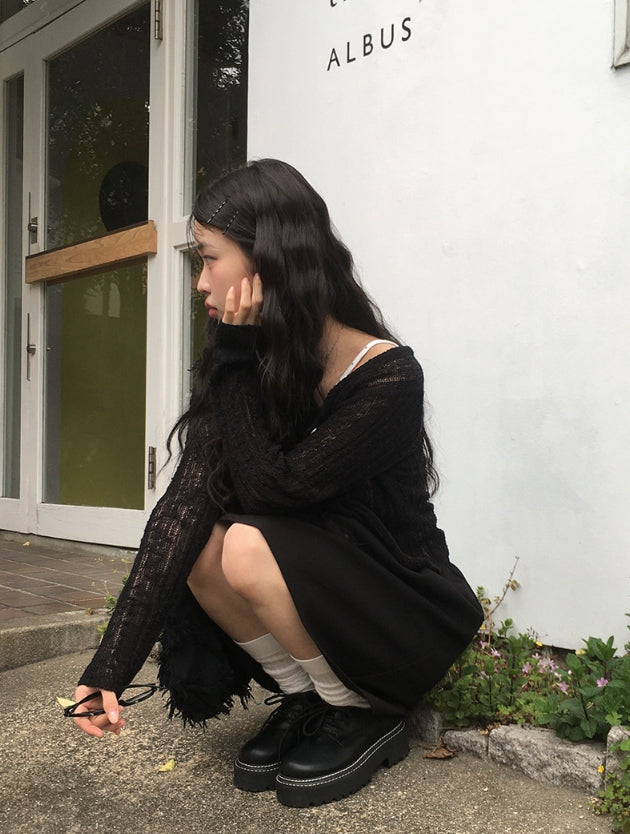タンシーサマーラウンドネック長袖カーディガン