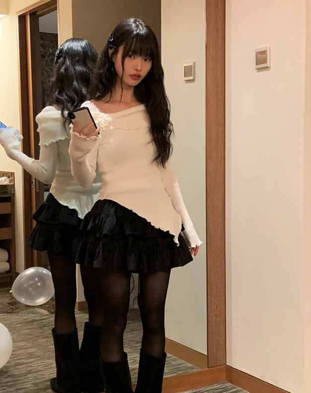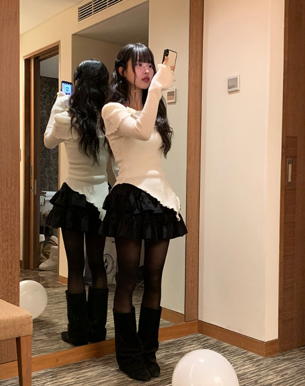 トプベルベットティアードミニスカート