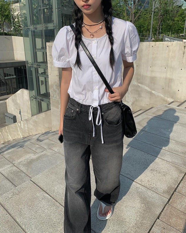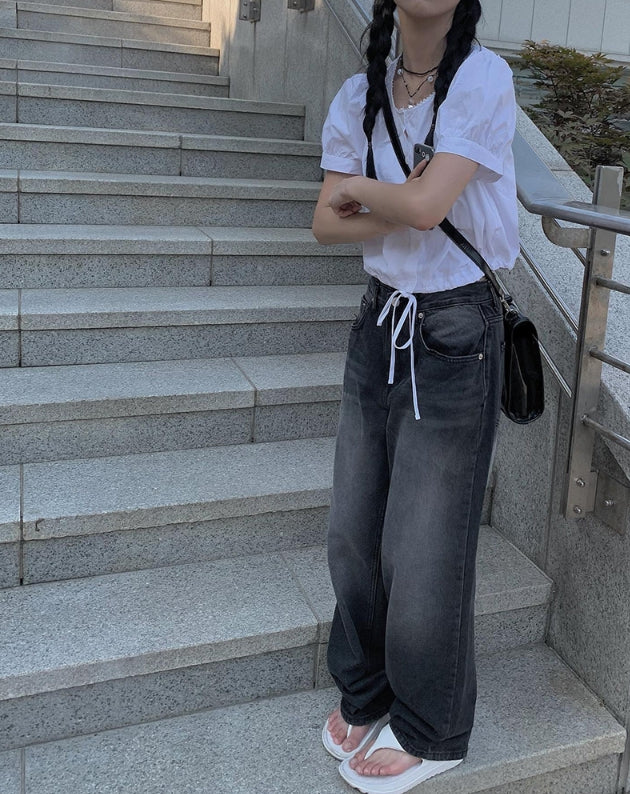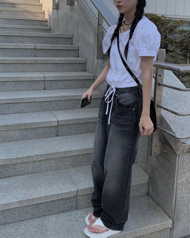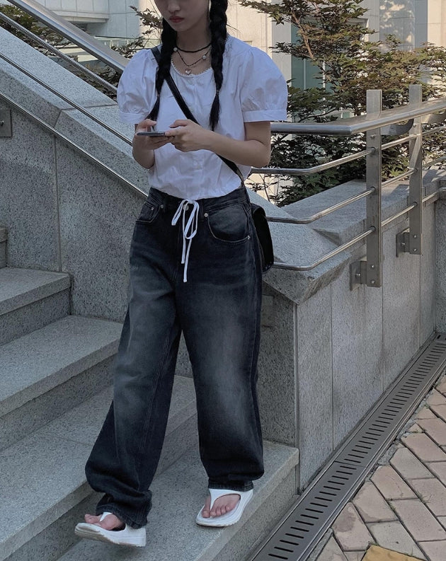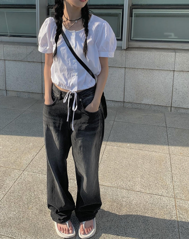 Toku Black Washing Wide Pants