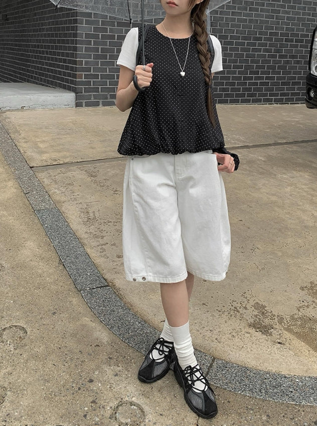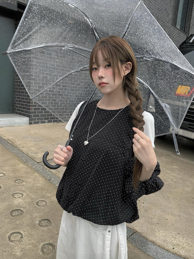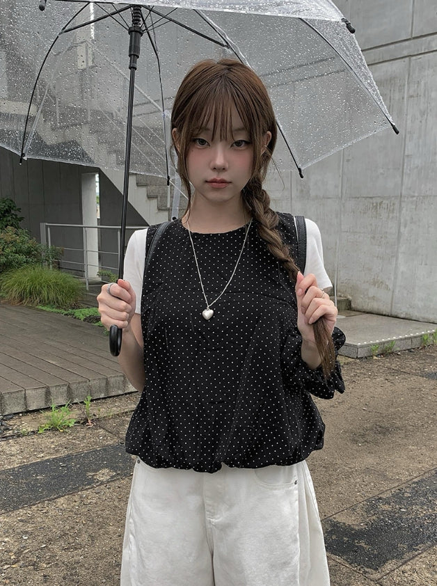 Verge Dot Balloon Pumpkin Sleeveless Blouse