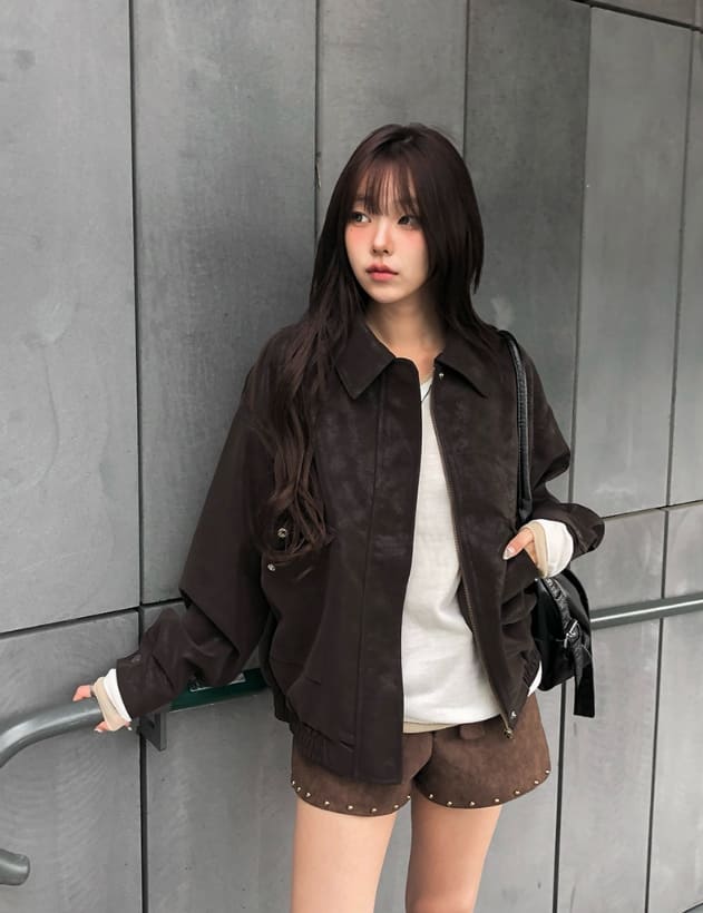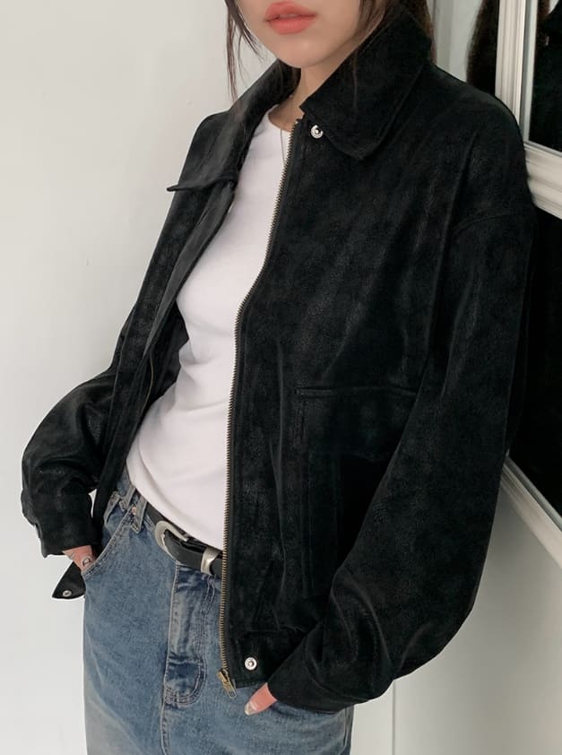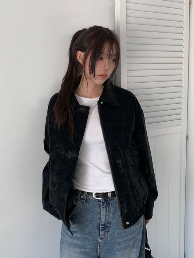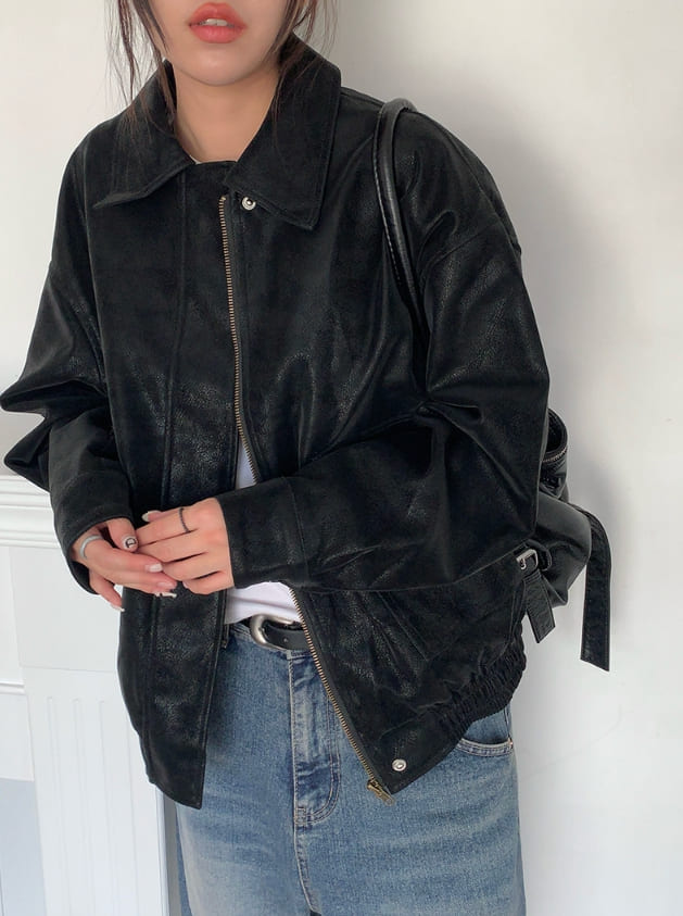 ヴォグレザーウォッシュ加工オーバーフィットブルゾンジャケット