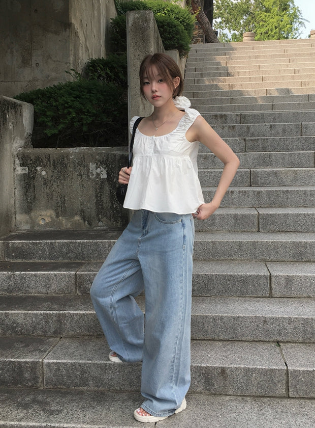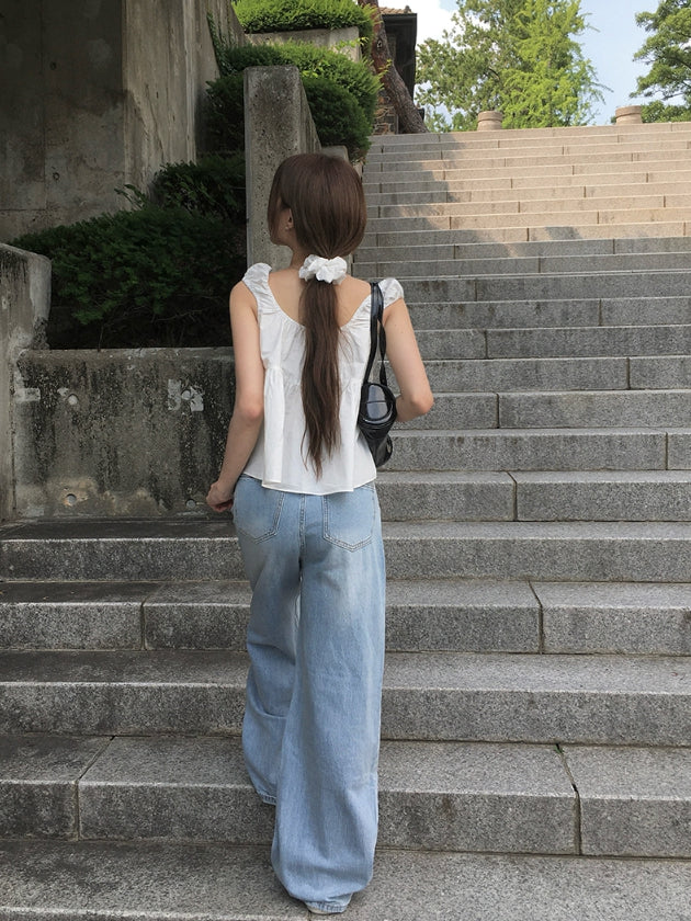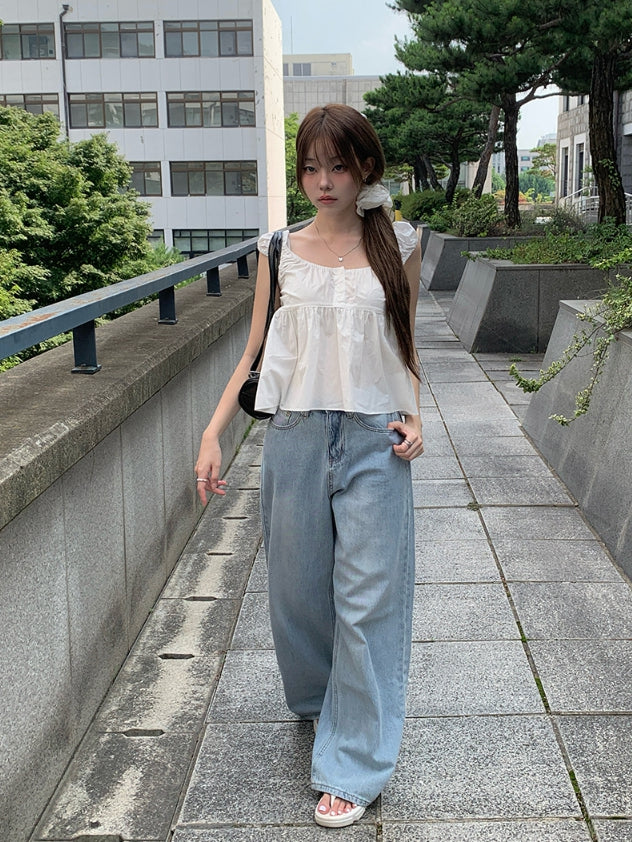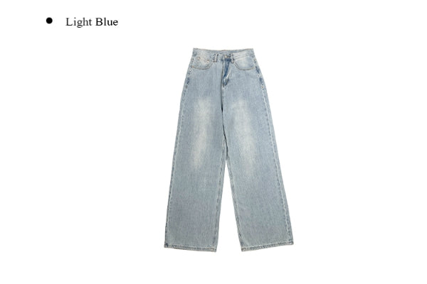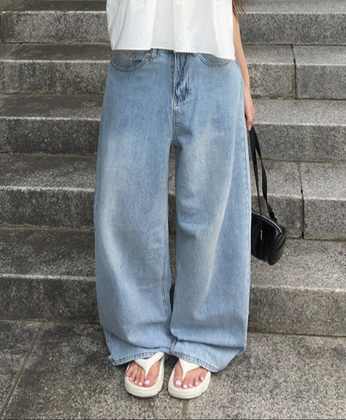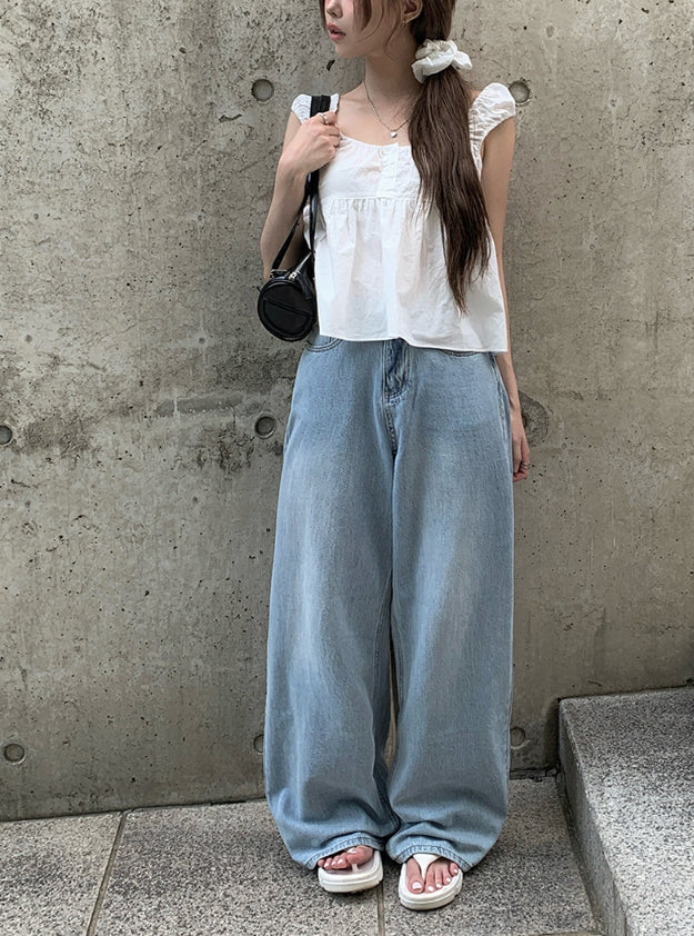 Wet Light Blue Washing Wide Denim Pants