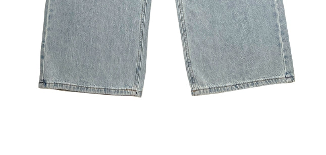 ウェットライトブルーウォッシュ加工ワイドデニムパンツ