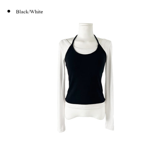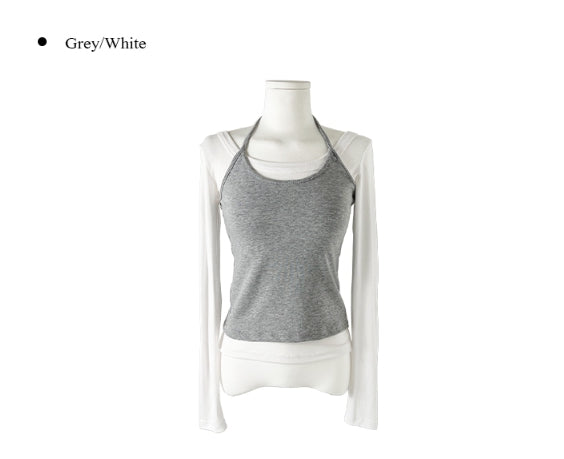 Yuan Halter Sleeveless Layered T-Shirt Set