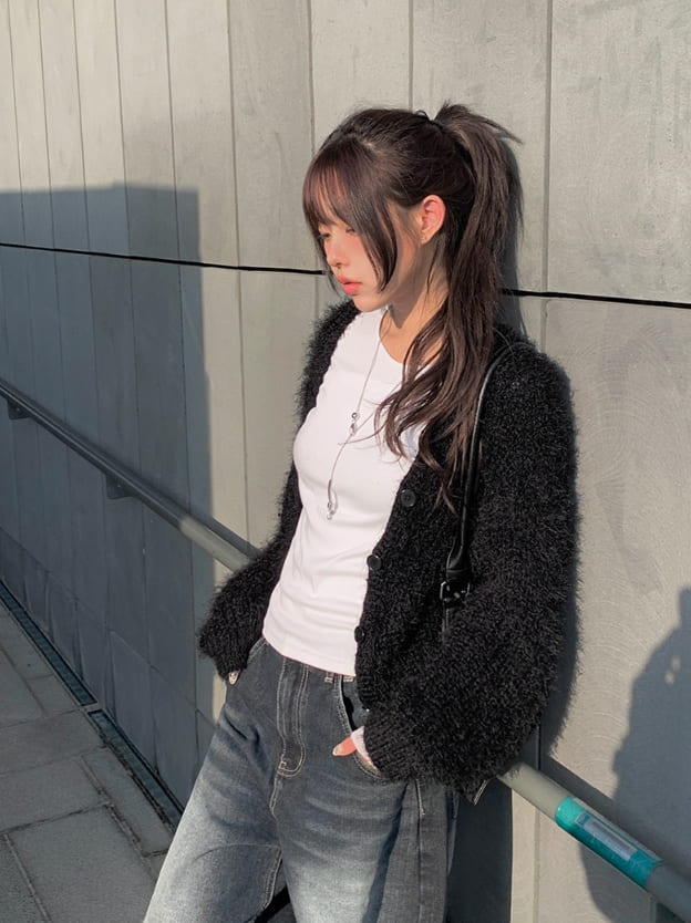 シオンアンゴラVネックルーズフィットニットカーディガン