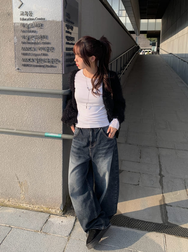 Zion Angora V-neck Loose Fit Knit Cardigan